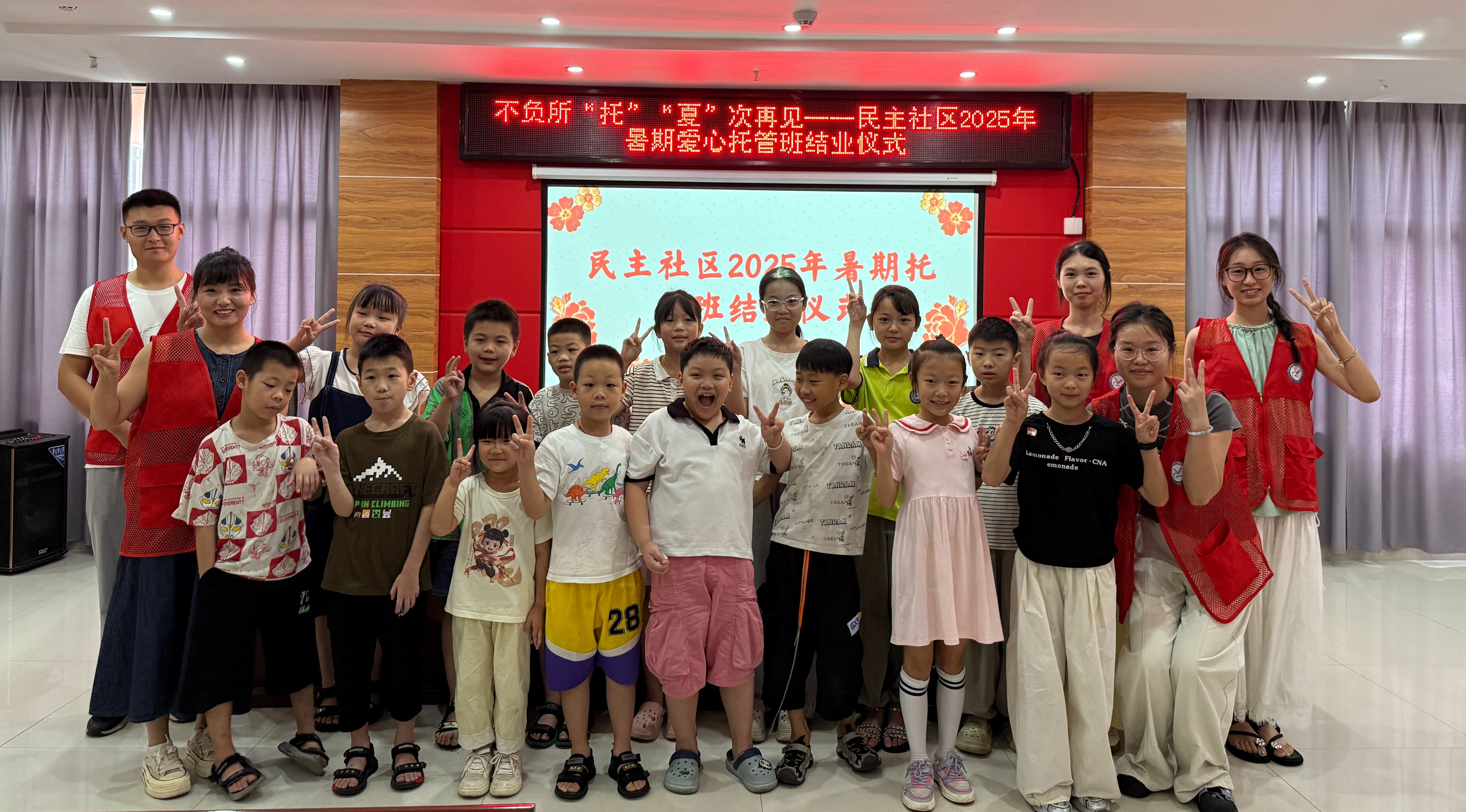 大学生志愿者依次表达了在“爱心托管班”工作期间的感受和收获,全体参与者在欢声笑语中合影留念,为这个特别的夏天画上圆满句号。此次暑期“爱心托管班”不仅切实解决了家长的假期看护难题,通过多元化课程促进了孩子们的全面发展。