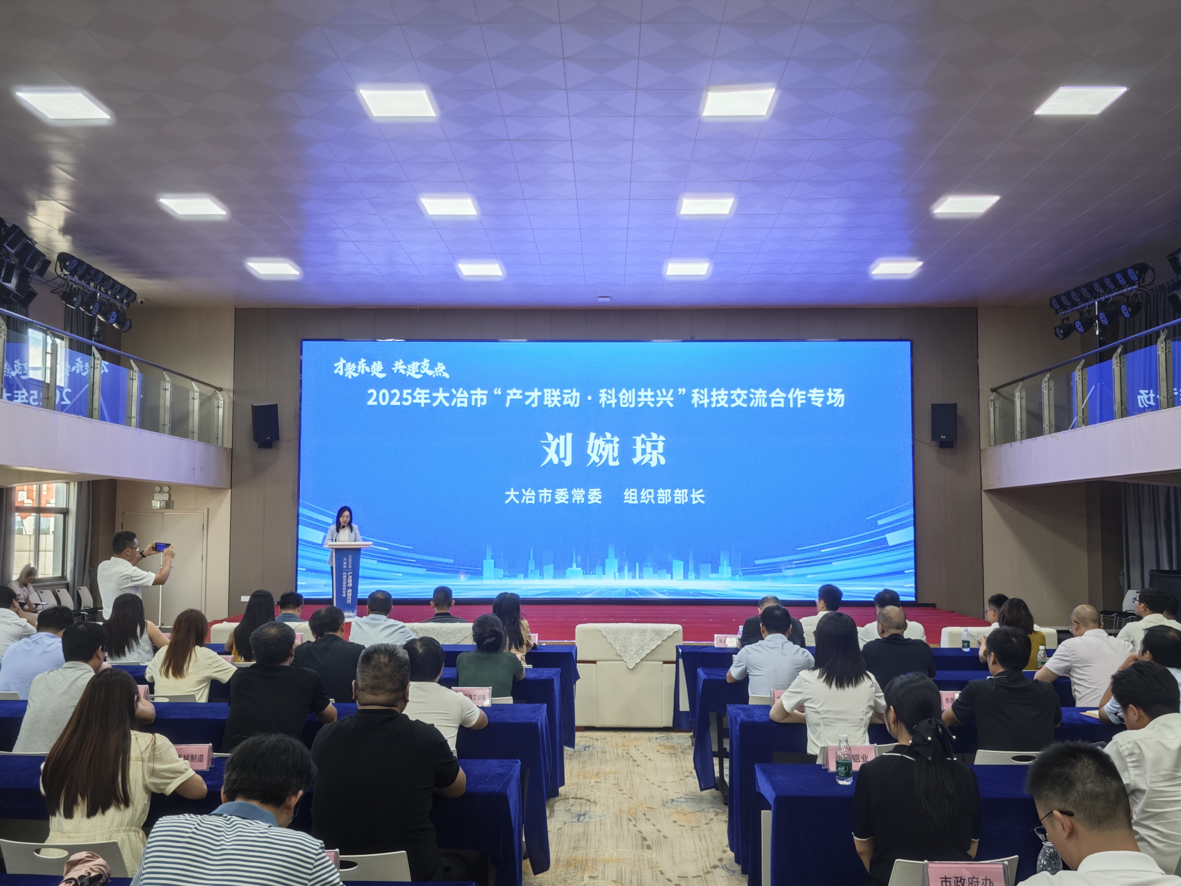 云上大冶报道(记者 柏蔷薇)作为黄石第三届“人才周”系列活动之一,8月14日,我市在大冶湖高新区大学科技园举行2025年“产才联动科创共兴”科技交流合作专场活动,进一步推动产才深度融合,释放产才融合新动能。市委常委、市委组织部部长刘婉琼,市政协副主席、市科学技术局局长董杨参加活动。