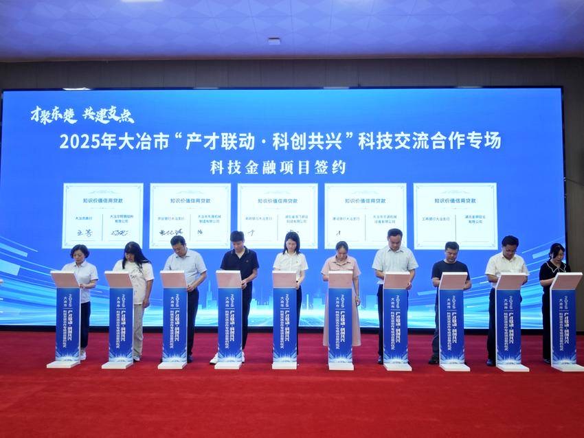 当天,大冶斯瑞尔换热器有限公司等五家企业分别与中国科学院广州能源研究所等五家高校院所进行校企科技合作项目签约,大冶农商行等五家金融机构分别与大冶华翔钢结构有限公司等五家企业进行科技金融项目签约,签订总计2330万元的知识价值信用贷款,为企业注入发展“及时雨”。