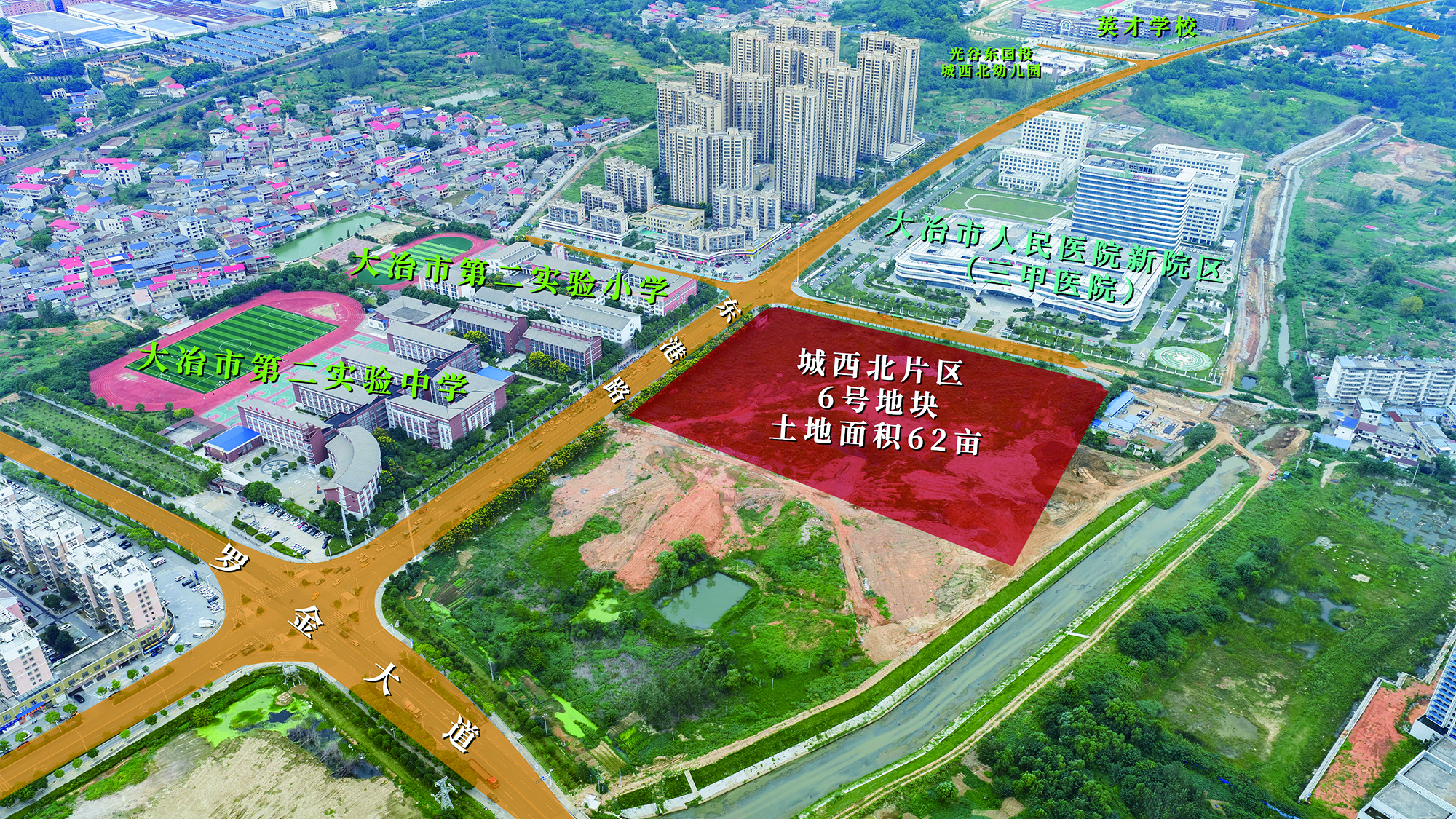 6号地块位于大冶市人民医院新院区南侧、罗金大道北侧、东港路东侧,规划出让土地面积62亩。