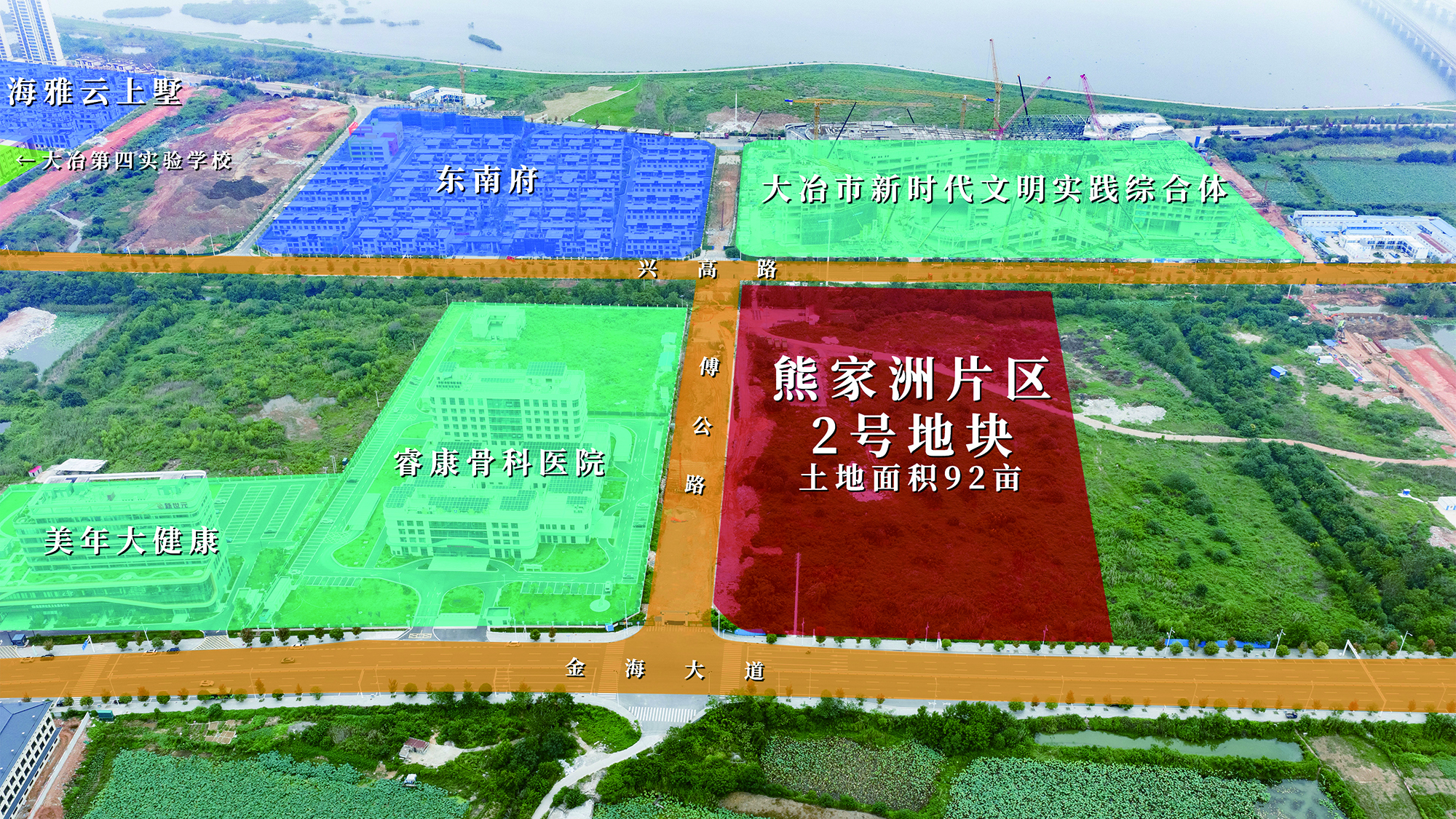 2号地块位于新时代文明实践综合体南侧、金海大道北侧、睿康骨科医院东侧,规划出让土地面积92亩;