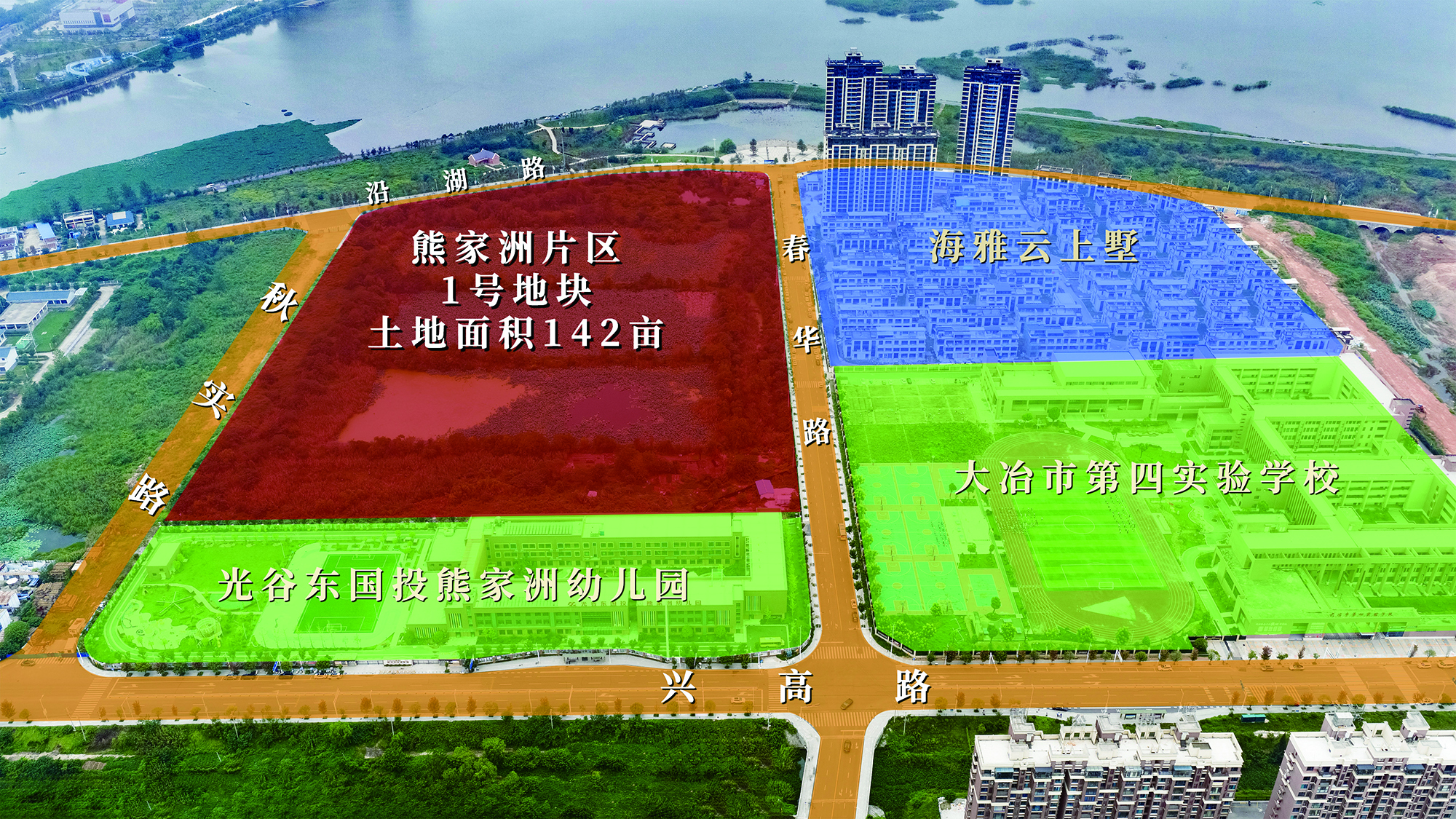 1号地块位于秋实路东侧、沿湖路南侧、兴高路北侧,规划出让土地面积142亩;