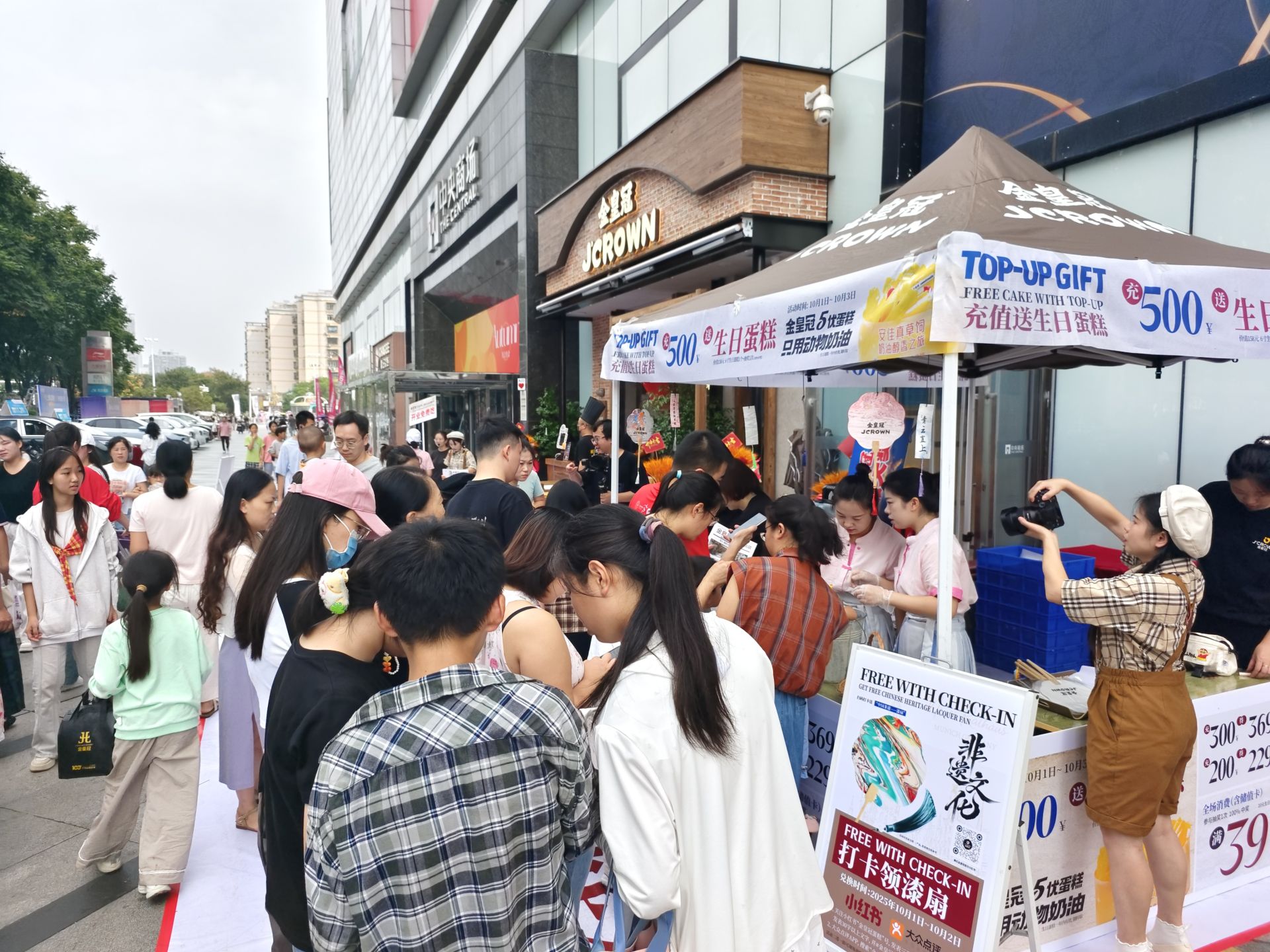 不远处的金皇冠手作风尚店内,匠人现场制作蛋糕的展示吸引了众多顾客驻足拍摄,收银台前很快排起长队。“选择国庆开业,就是看中这里的客流基础,”店主表示,“不少顾客专程从郊区、乡镇赶来,我们将通过三店联动、增派人手来满足需求。”
