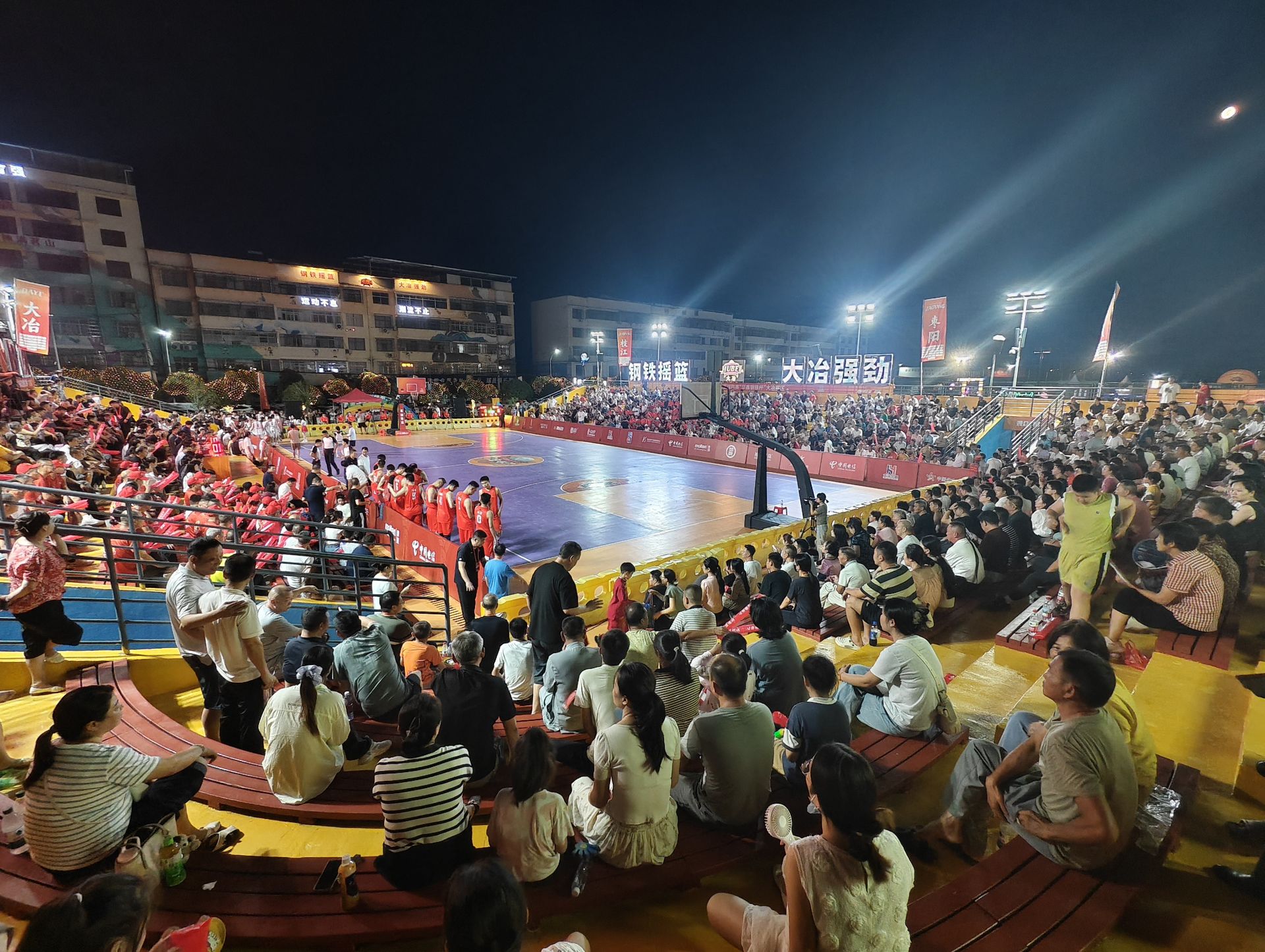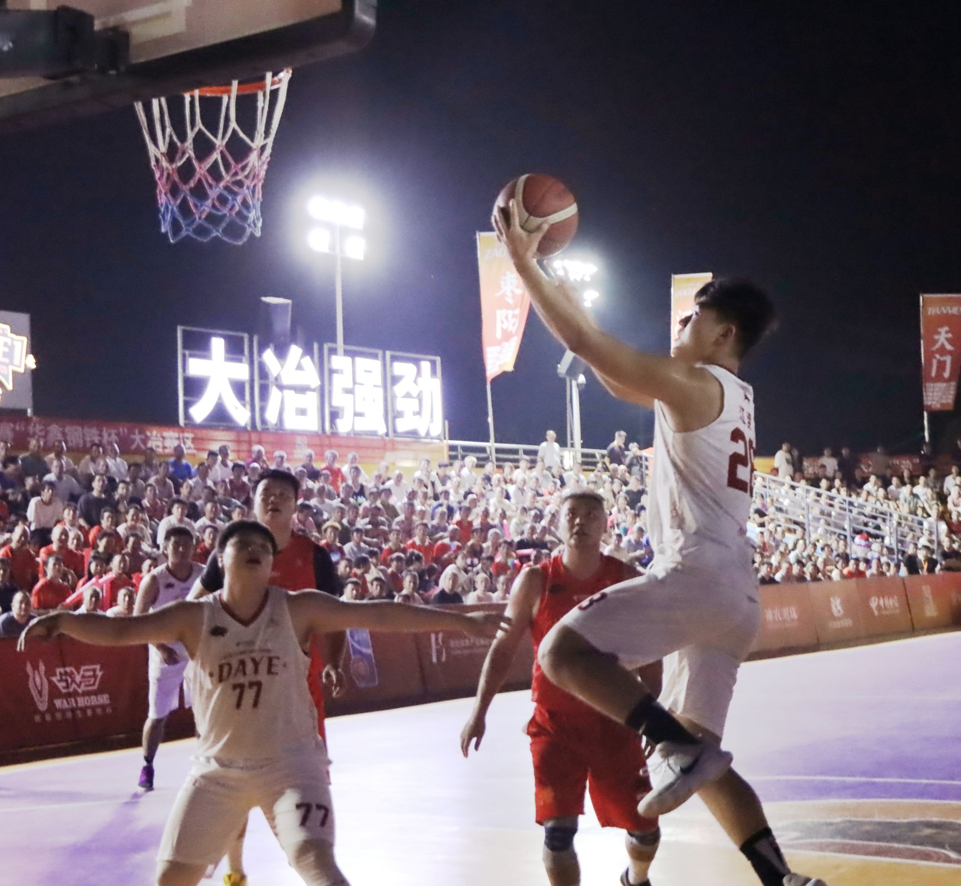 当天晚上7点,茗山乡运动健身中心已坐满了球迷。7点30分,在现场山呼海啸的加油声中,比赛开始。双方争球后开始贴身缠斗,潜江队球员持球突破,大冶队球员张开双臂筑起人墙,两人手臂绞作一团仍不肯松劲;大冶队球员抢下进攻篮板,补篮得手首开纪录,潜江队球员立刻就地反抢,急停跳投还以颜色……首节战罢,大冶队以17∶16领先1分。看台上球迷们攥着加油牌喊:“这才叫主场!拼得凶!”