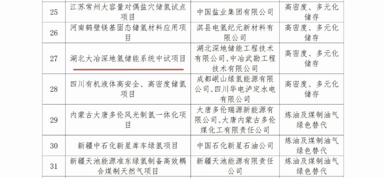 云上大冶报道(记者 但超)日前国家能源局公布的第一批能源领域氢能试点名单通过了公示期,大冶深地氢储能系统中试项目成功入选,成为41个国家氢能试点项目之一。
