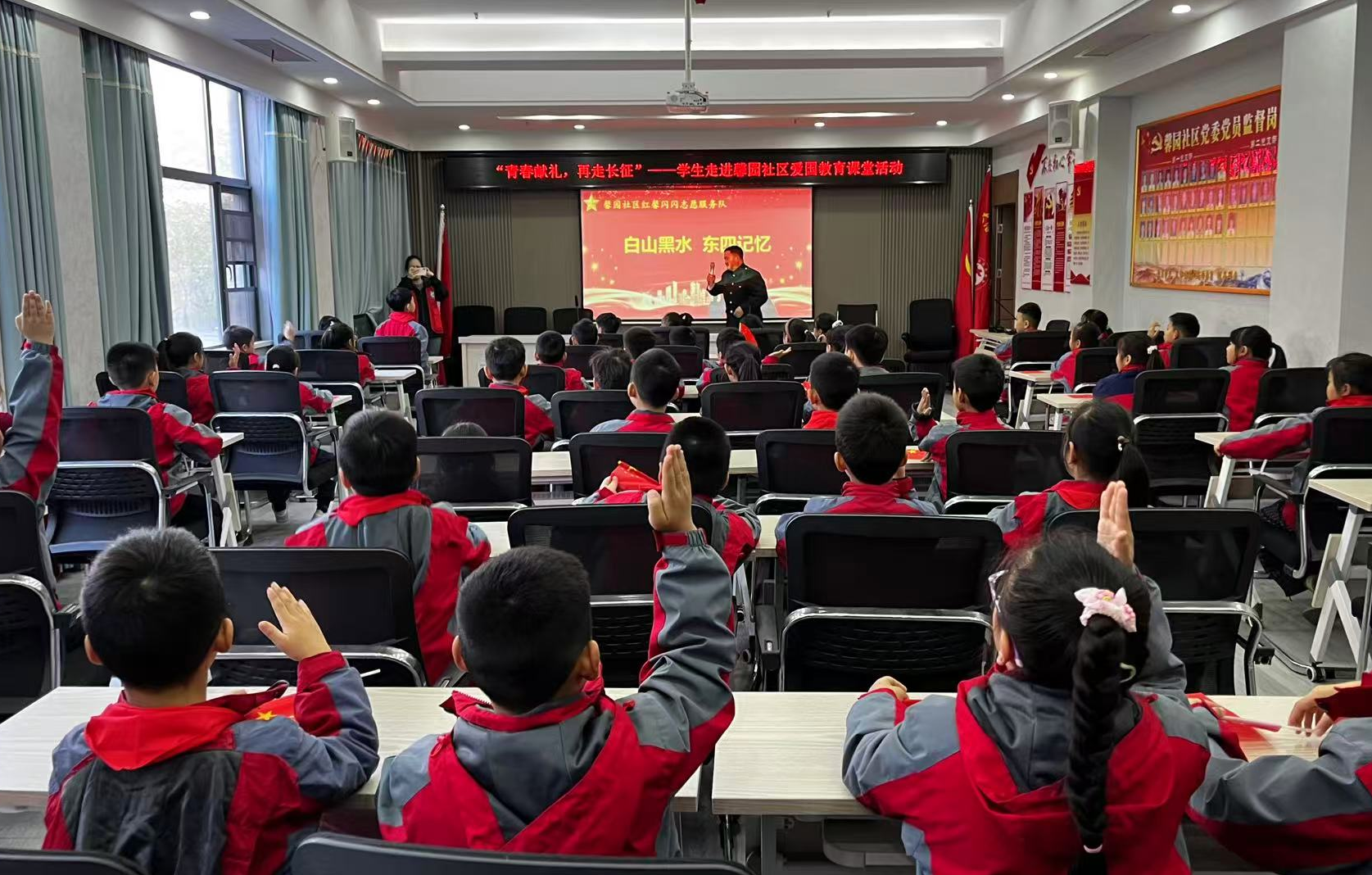 在馨园社区新时代文明实践站,“东风戎耀”退役军人志愿服务队队长皮振东结合自身经历,开展国防教育宣讲,激发学生爱国热情。随后,队员闫娟带领学生齐唱《我们是共产主义接班人》,嘹亮的歌声回荡现场。
