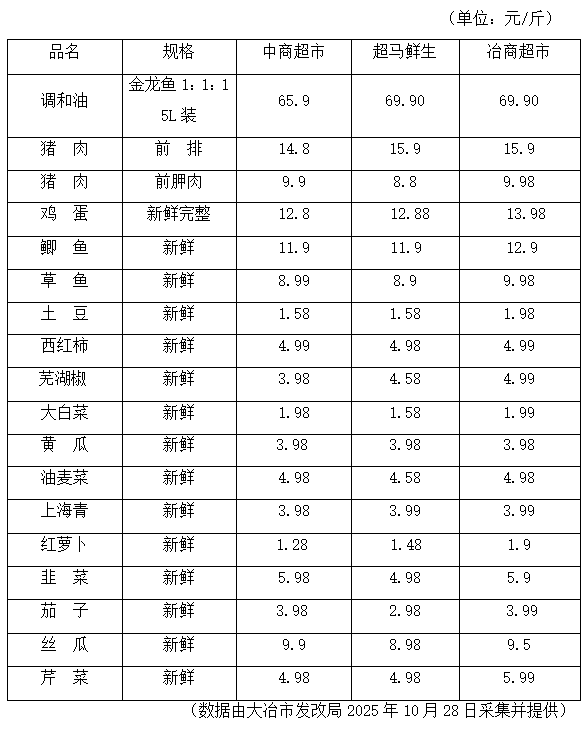 大冶市发改局价比三家监测表