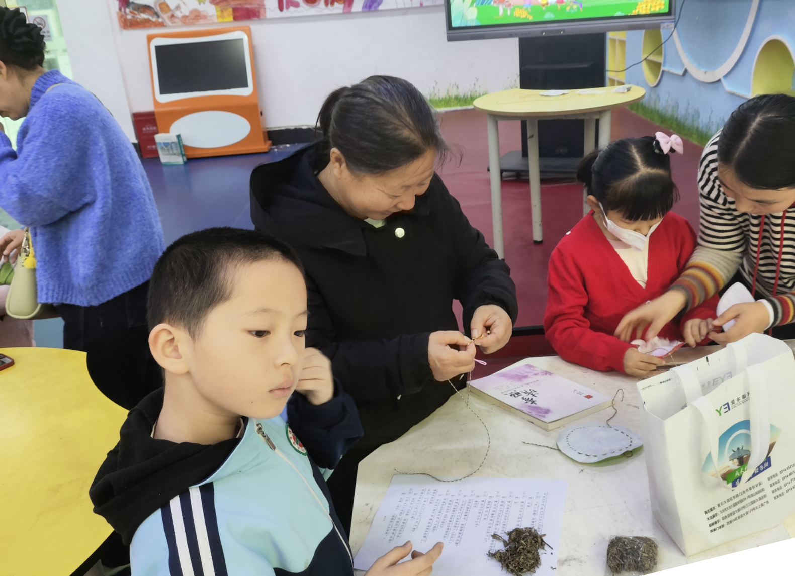 随后进行的“童智趣”重阳节香囊手工制作培训环节,志愿者首先介绍了重阳节佩插茱萸、祈福安康的传统习俗,并详细演示了香囊的制作步骤,耐心指导孩子们动手缝制香囊。