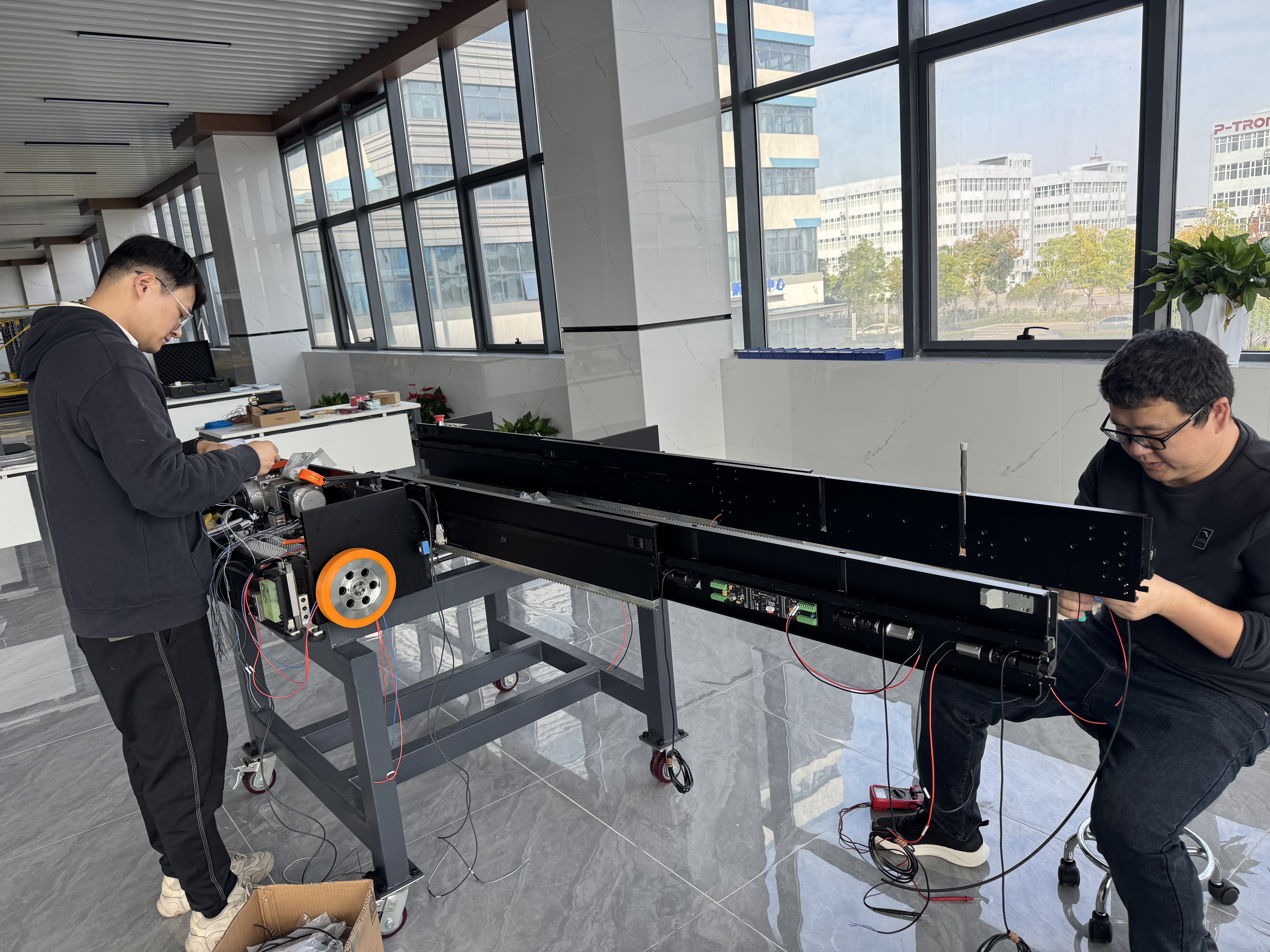 “这是我们为立体库研发的核心存储搬运设备。安装完成后,它们将在货架上进行7至24小时不间断跑测,重点检验换向、顶伸等动作的精准度,以及顶层机构等关键部件的吻合程度。只有完全合格的产品,才能下线交付客户。”高合智能副总经理蔡璐介绍,目前企业发展势头迅猛,展厅设备已陆续进场,覆盖立体仓库存储、搬运、无序抓取等多种应用场景,工业机器人服务性订单已突破500万元,客户遍布全国。生产线正全力运转,确保年底前完成所有订单交付。