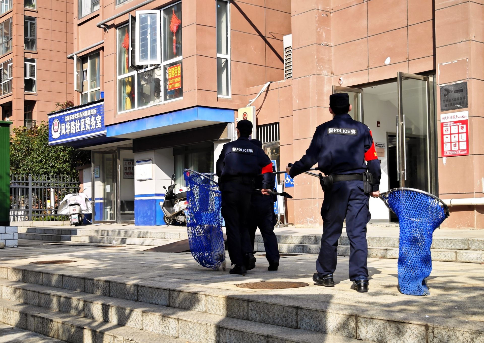 在风华路社区沿街商铺及居民楼道内,治安民警手持清理工具,对墙面、电线杆、单元门等处的非法小广告进行逐一铲除。遇到难以清理的顽固污渍,民警和社区工作者用喷水壶湿润后再仔细擦拭,不放过任何一处卫生死角。