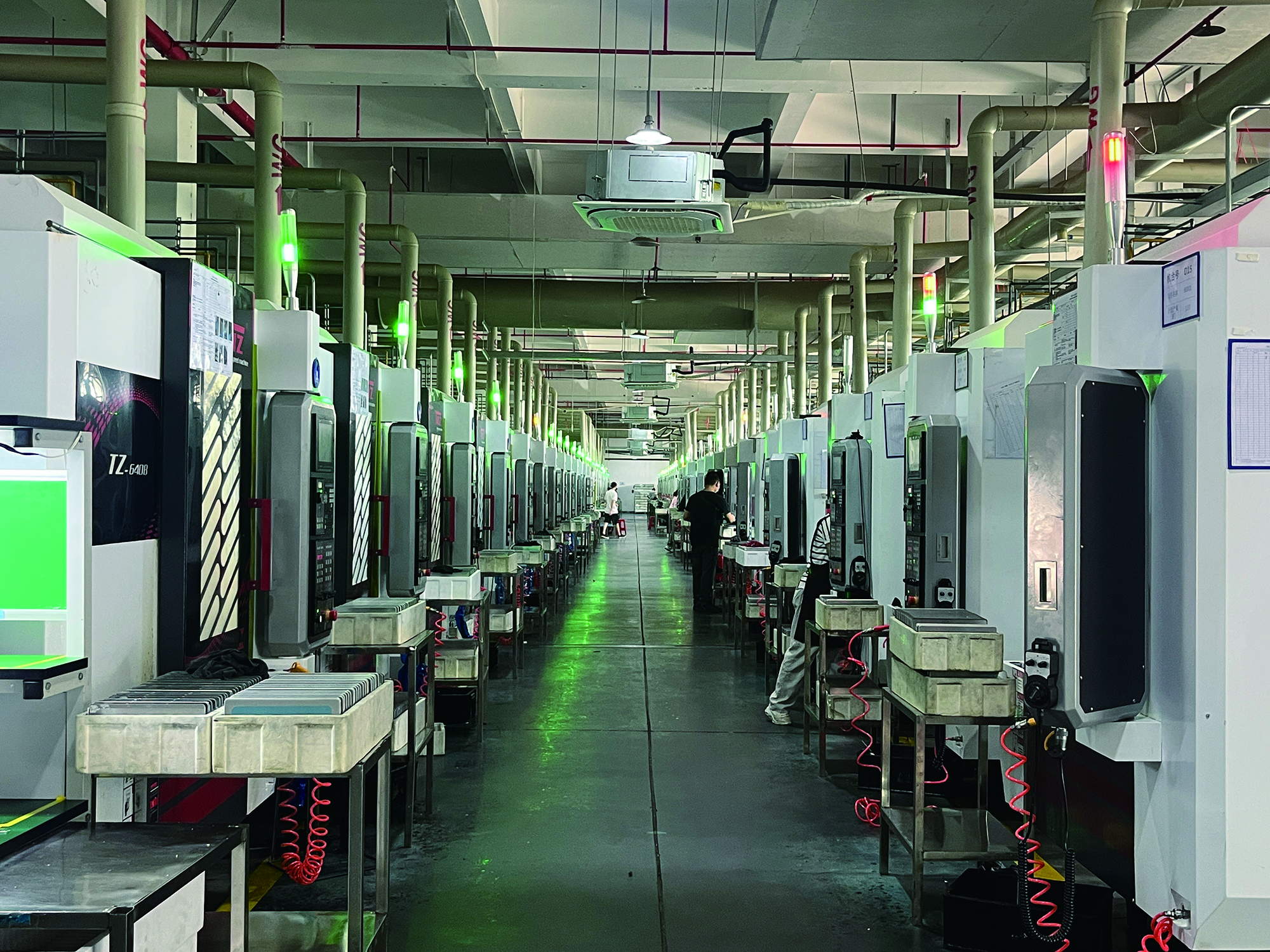 11月5日,走进位于我市电子信息产业园的度边电子生产车间,机器声平稳而持续。271台CNC机床排列整齐,正在自动运转,工人们主要负责上下料和巡检,大部分产品加工都由设备自主完成。