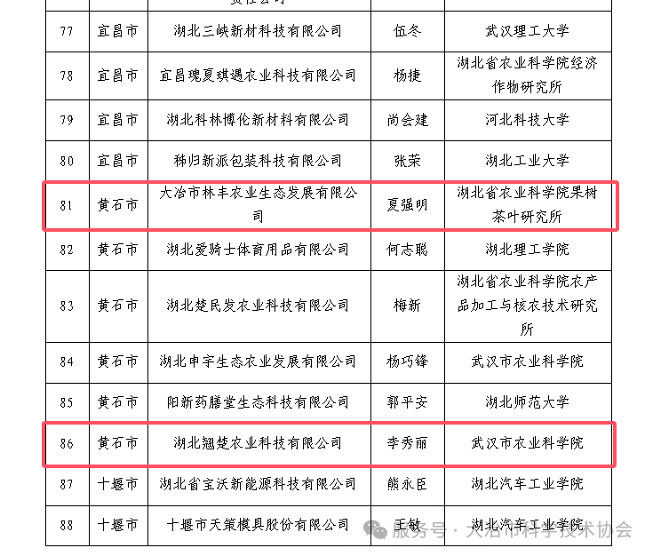 云上大冶报道(记者 熊业欣)日前,湖北省科协公布了关于2025年湖北省博士创新站名单,大冶市林丰农业生态发展有限公司、湖北翘楚农业科技有限公司成功入选,成为首批湖北省博士创新站单位。