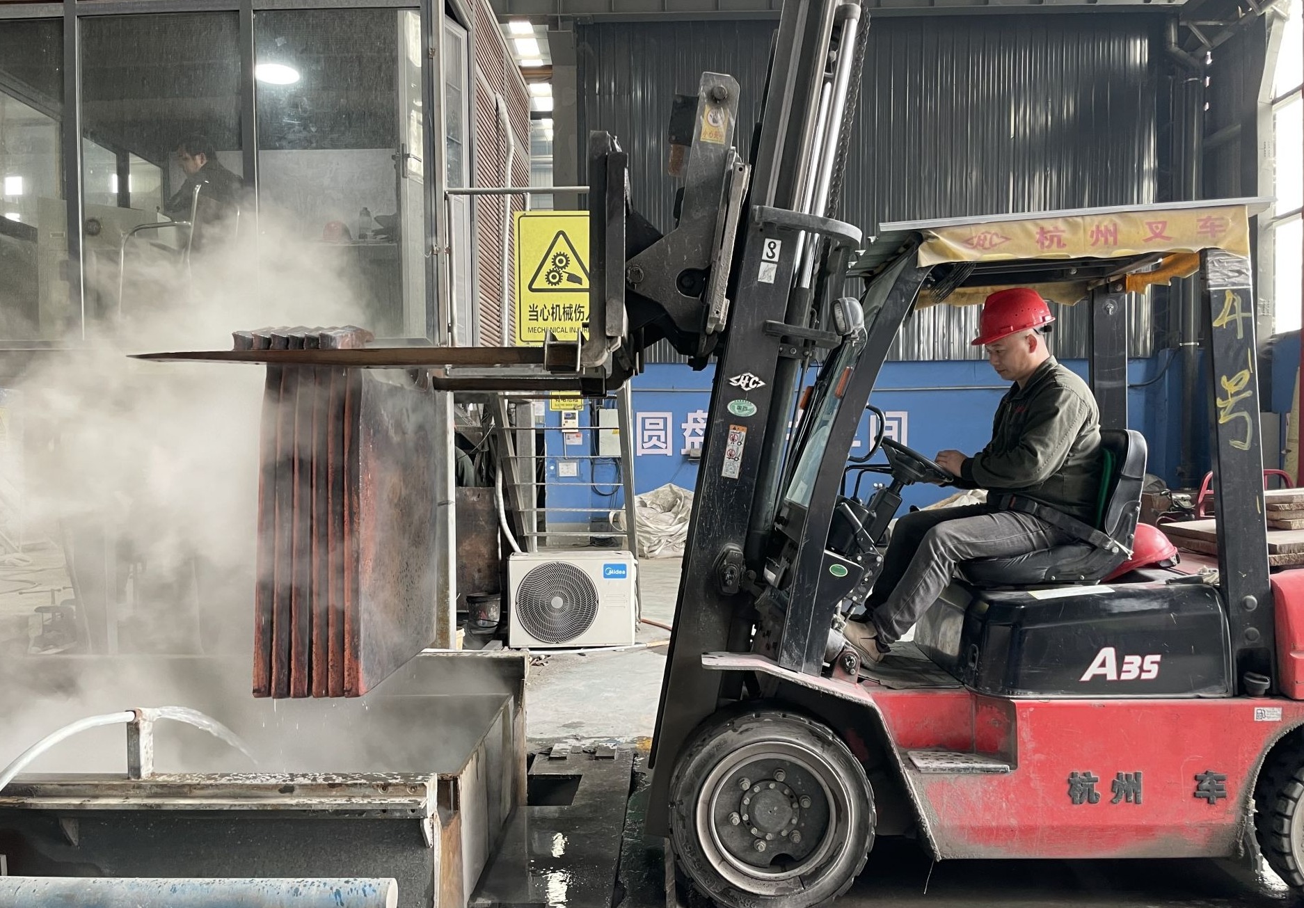 11月17日,众冶矿产品循环产业园车间里,废铜原料在阳极炉中熔化为炽热的铜水,经过浇注、冷却、修整等一系列工序,最终成型为闪着金属光泽的阳极板。“我们一个月能生产2500吨阳极板,目前年产量已达2.7万吨。”众冶铸造有限公司(以下简称“众冶铸造”)负责人曹中荣指着生产线信心满满地表示,将提前完成全年产量3万吨、产值20亿元的总目标。作为园区产业链上的关键一环,众冶铸造的快速达产增效,正是整个产业园蓬勃发展的生动缩影。