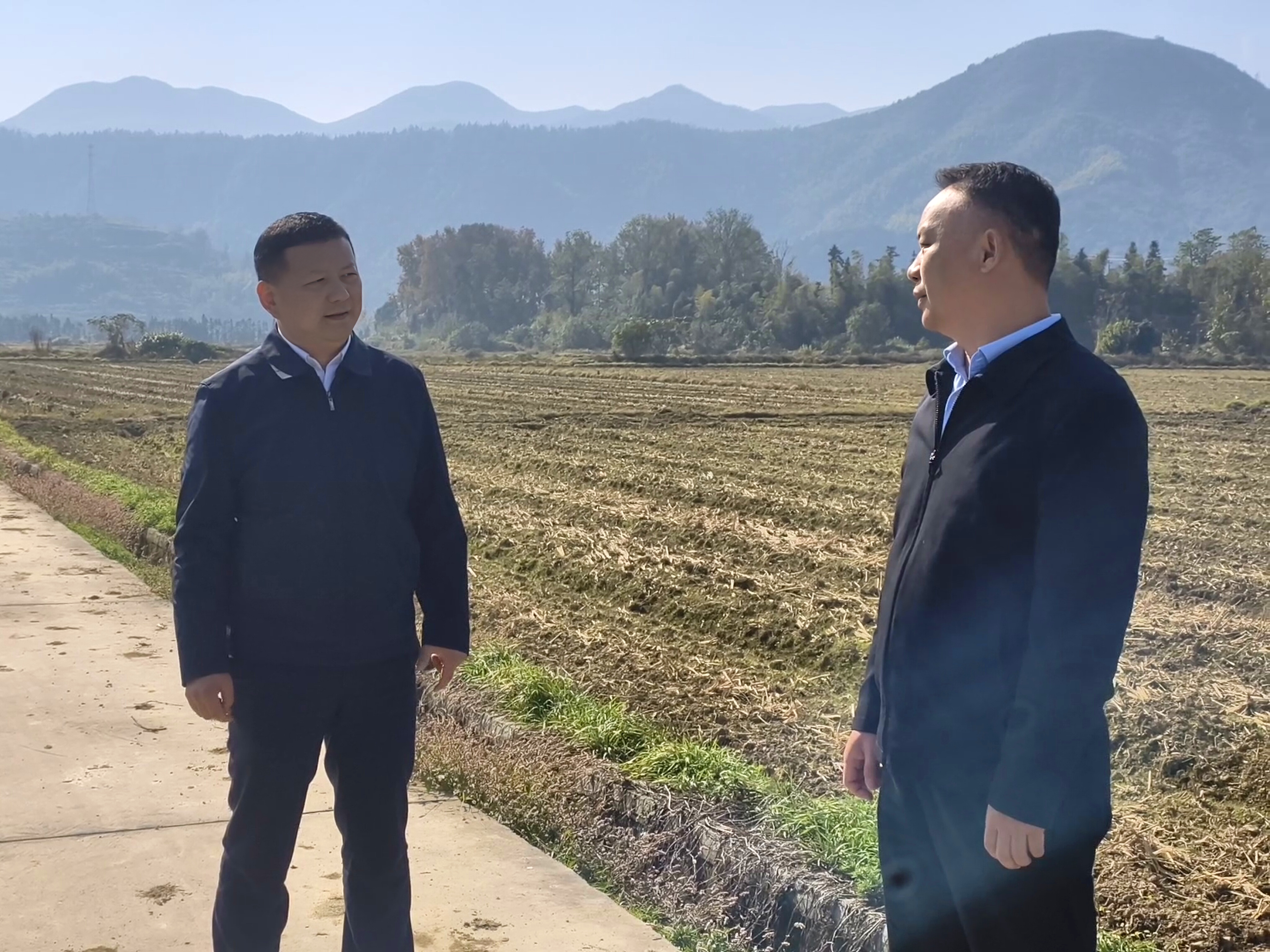 在刘仁八镇三策大畈,潘小进详细了解秋冬作物播种进度、亩均产量、经济效益及高标准农田建设等情况。他强调,要精心组织调度,加强政策支持、农资保障、技术指导,多措并举调动农民种植积极性,确保应种尽种、种满种足;要深入实施好“藏粮于地、藏粮于技”战略,大力推动撂荒地整治,高质量推进高标准农田建设,为粮食稳产保供提供坚强保障。