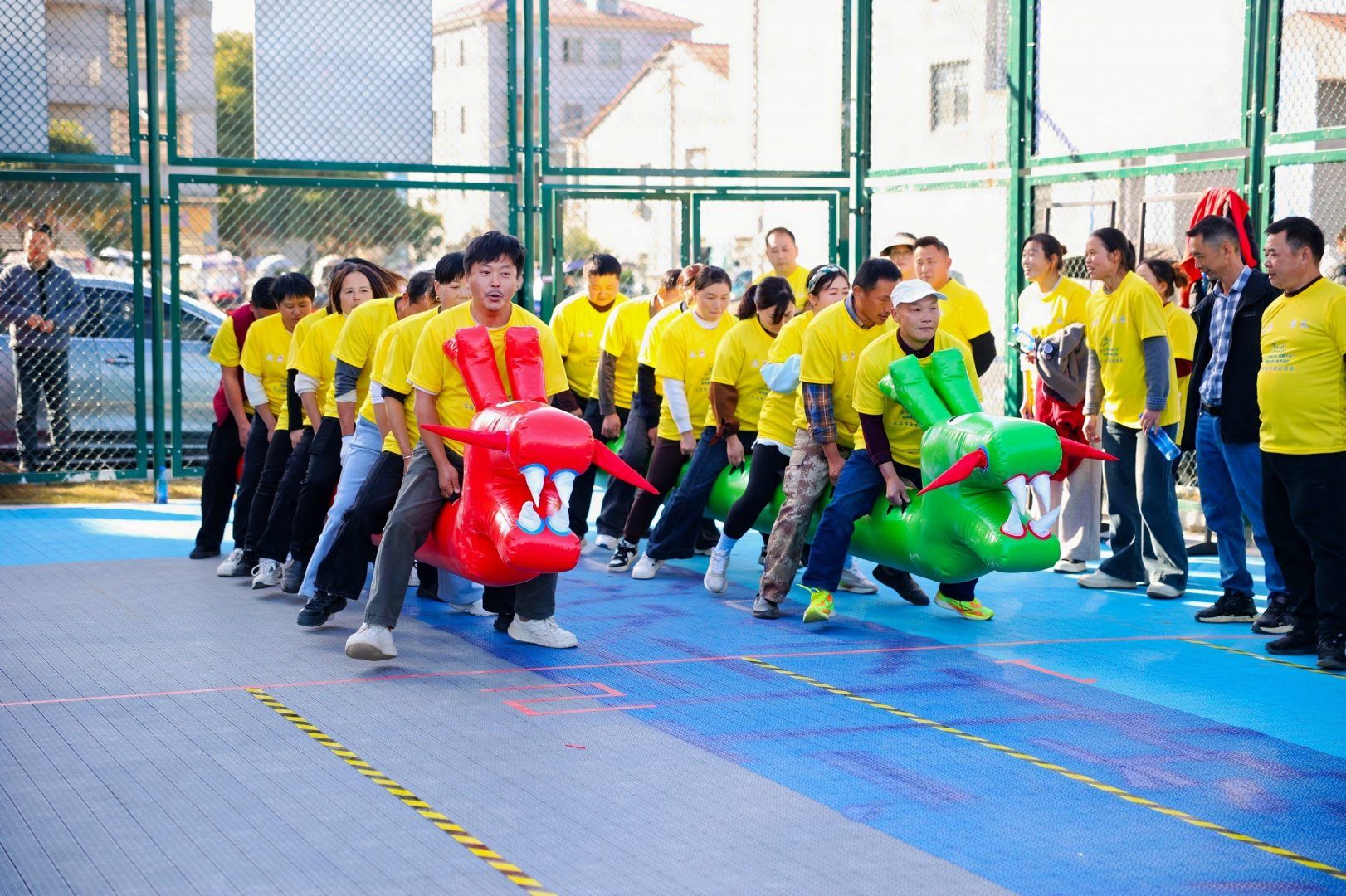 篮球场上,矫健的身影在阳光下灵动地跳跃穿梭,每一次精准投篮和默契传球都引发阵阵欢呼;拔河比赛现场气氛紧张而热烈,参赛者们紧握粗壮的绳索,身体后倾全力拼搏,即便手臂青筋暴起,每个人的脸上却依旧洋溢着灿烂的笑容,展现出坚持到底的体育精神;而在特色自选项目区,两人三足的比赛现场更是充满欢声笑语,一组组选手肩并肩、腿绑腿,全身心投入这场速度与配合的较量,在竞技与协作中尽情释放青春活力。