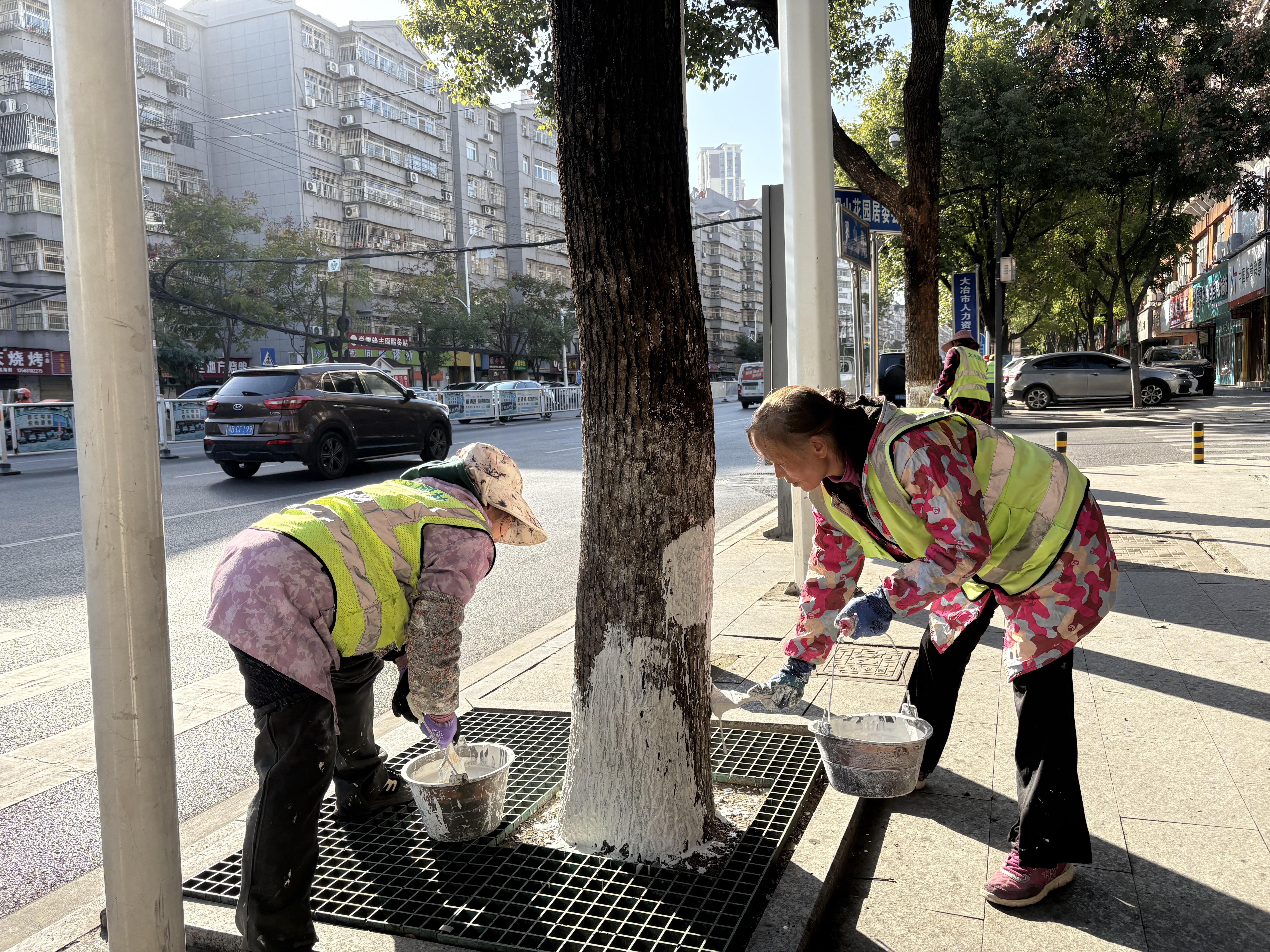 “为了让树木安稳过冬,我们从11月初就开始筹备,11月25日正式启动,组织了30余名工人进行专项养护,采取‘分片包段、分组作业’的方式,对城区重点路段的10万余棵树木开展拉网式涂白,预计12月底完成全部工作。”市园林局绿化养护负责人秦立华说。