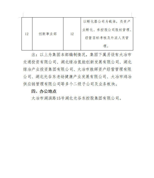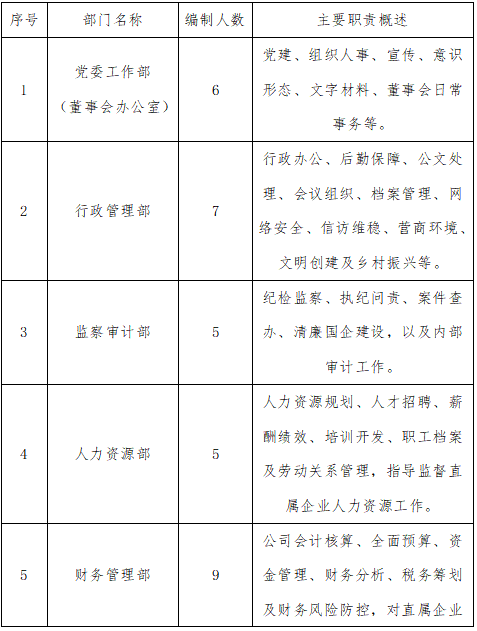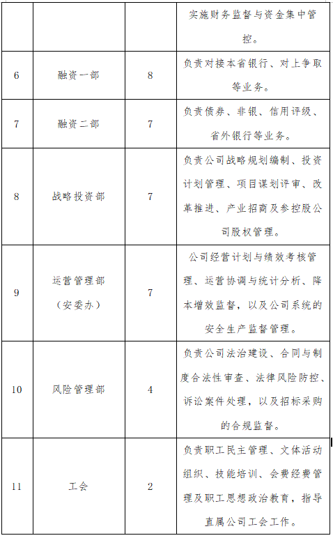 集团本部共设立12个职能部门,具体编制及在岗情况如下: