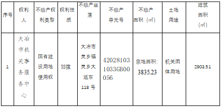 大冶市机关事务服务中心(灵乡自然资源和规划所)位于大冶市灵乡镇灵乡大道东118号宗地,因办理不动产登记需要进行不动产权籍调查,根据《国土资源部关于做好不动产权籍调查工作的通知》(国土资发【2015】41号)、《地籍调查规程》(GB/T 42547-2023)、《自然资源部关于加快解决不动产登记若干历史遗留问题的通知》(自然资发[2021]1号文)、鄂自然资函【2020】390号文,现将该宗地不动产权籍调查结果予以公示,若相关邻宗地土地权属人对该宗地的公示情况有异议的,请自本公告之日起十五个工作日内将异议书面材料送达我中心。逾期无人提出异议或异议不成立的,我中心将按不动产权籍公告结果予以登记。
