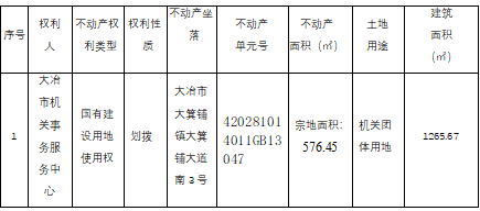 异议书面材料送达地址:大冶市长乐大道大冶市政务服务中心大楼二层市不动产登记中心