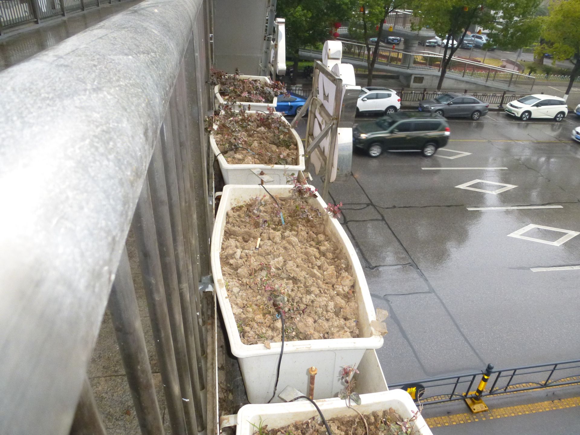 接到线索后,12月23日,记者首先来到观山路金叶·佳境天城小区地下停车场入口附近,看到错落摆放的十余个大小花箱中,竟有一大半的绿植与花草已枯萎,另外还有多个花箱箱体破损严重,堆放着路人丢弃的生活垃圾,俨然成了“临时垃圾箱”。