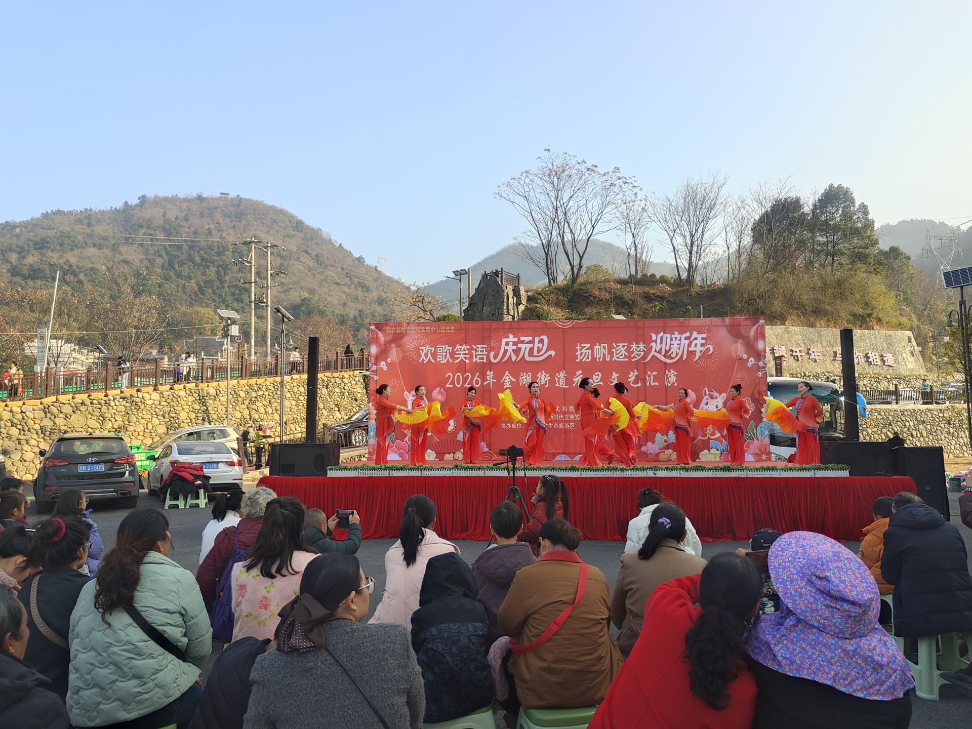 云上大冶报道(记者 郑甜甜)12月28日,由市文化和旅游局、金湖街道联合主办,金湖街道新时代文明实践所、综合文化站承办的“欢歌笑语庆元旦·扬帆逐梦迎新年”2026年金湖街道元旦文艺汇演,在上冯古村生态旅游区游客中心热闹开演。