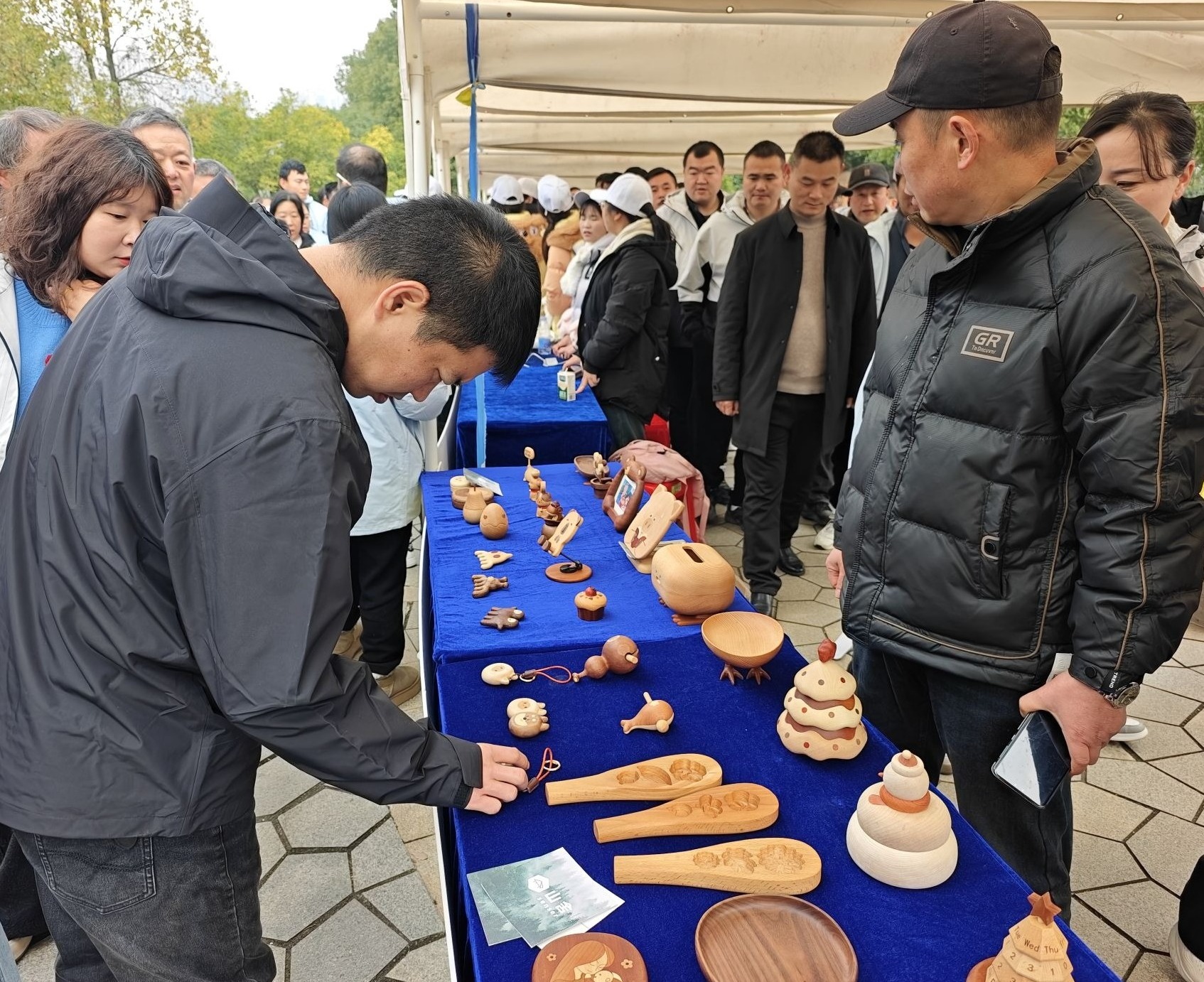 大冶木雕打卡点吸引了不少人驻足。展台上陈列的手机支架、餐盘、台历、收纳盒等现代实木家具,既贴合当代使用与审美,也传递出手工艺的价值。木器细腻打磨的边角、精致巧妙的榫卯设计、手工艺人娴熟的技法、一刀一线刻画出来的灵魂,都在安安静静地向世人展示着他们对自然、对生活的热爱。