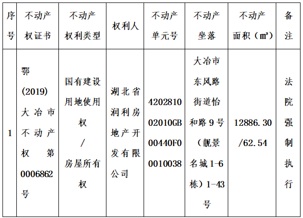 异议书面材料送达地址:大冶市长乐大道大冶市政务服务中心大楼二层市不动产登记中心