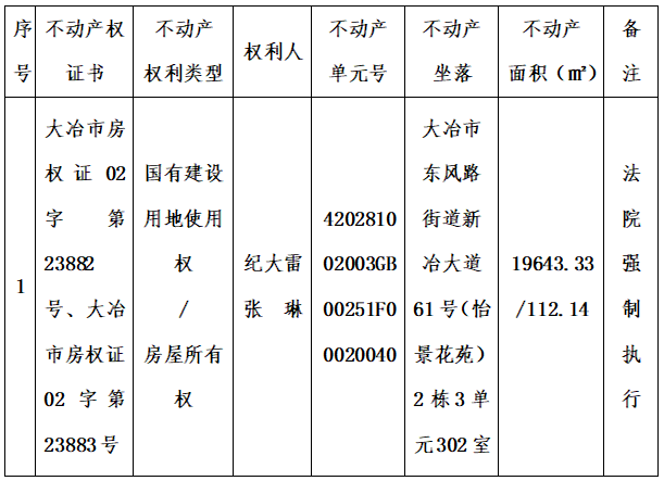 异议书面材料送达地址:大冶市长乐大道大冶市政务服务中心大楼二层市不动产登记中心