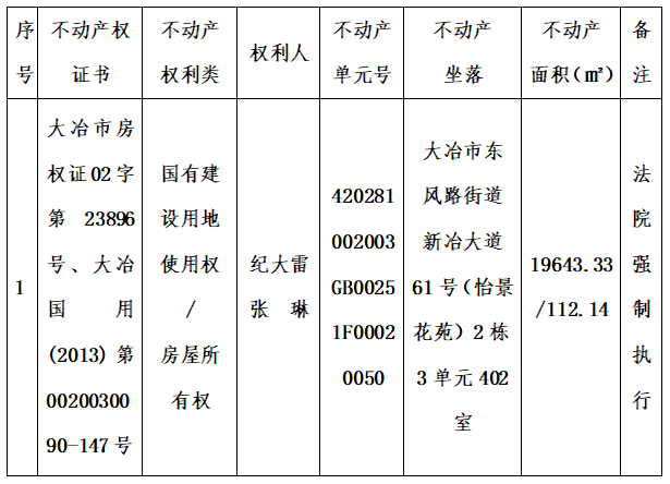 异议书面材料送达地址:大冶市长乐大道大冶市政务服务中心大楼二层市不动产登记中心