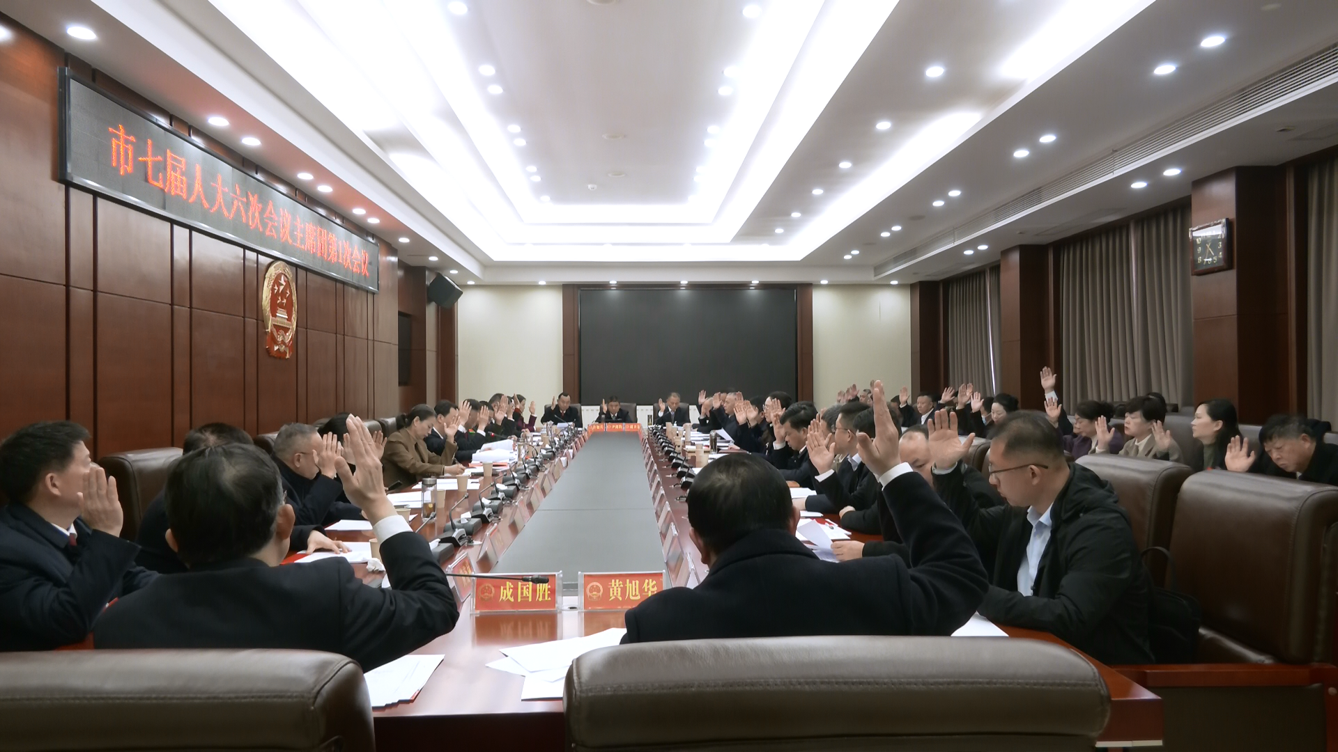 会议以举手表决的方式通过了大会日程;推选了大会主席团常务主席名单;通过了大会执行主席分组名单;决定了大会副秘书长名单;决定了各代表团团长、副团长名单;通过了大会选举办法(草案),并提请代表审议;通过了有关专门委员会主任委员人选通过办法(草案),并提请代表审议;通过了议案、质询案截止时间的决定;通过了表决各项决议办法;通过了大冶市2026年民生实事项目人大代表票决办法(草案),并提请代表审议。