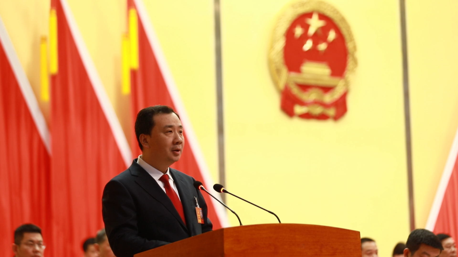 大会随后进行宪法宣誓仪式。戴杰领誓,其他宣誓人员跟诵誓词。