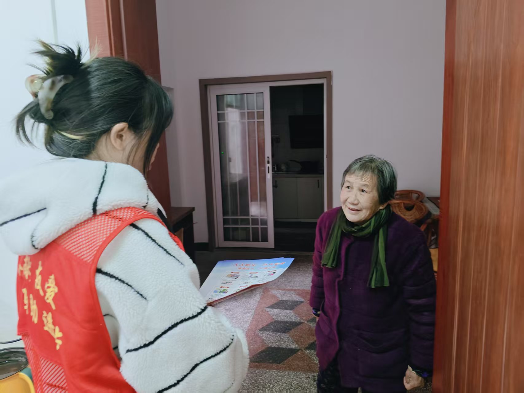 社区网格员化身消防安全宣传员,深入独居、空巢老人家中开展“一对一”精准服务。工作人员摒弃生硬说教,以“拉家常”的方式,结合冬季火灾高发特点,用通俗易懂的语言讲解家庭用火、用气、用电等常见风险点,重点普及电热毯使用后及时断电、燃气灶具规范操作等实用安全知识。同时,向老人们发放《家庭防火“三清三关”》图文手册,通过清晰的图示与简洁的文字,直观解读“清走道、清阳台、清厨房,关火源、关电源、关气源”的核心要求,让老年群体轻松理解、熟练掌握。