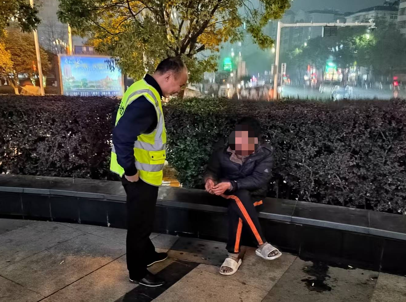 1月17日晚,救助人员在雨润广场台阶处发现一名衣衫单薄、脚穿凉拖的中年男子。经耐心沟通,该男子为阳新籍,长期在外流浪且起初拒绝救助。工作人员立即联系其户籍地村干部核实。据反馈,该男子患有精神疾病,离家多年,家属苦寻未果,急需医疗介入。为确保其安全,市救助站迅速协调东风路派出所民警,共同将该男子护送至市精神病院接受专业诊治。