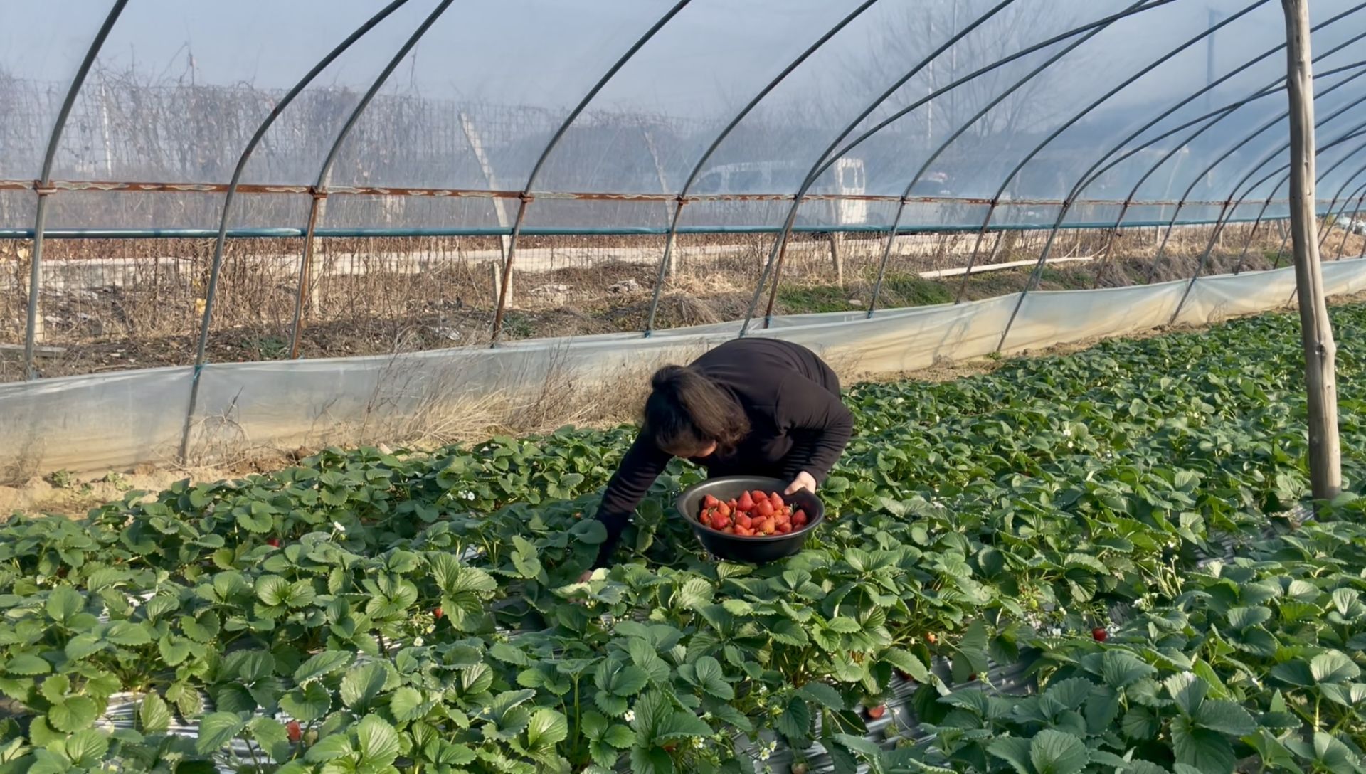 谈及收成与销路,张兰选笑意更浓:“每天送商超的量大概有300—500斤,游客采摘量也有100斤上下,预计今年每亩产量能达4000—5000斤。我们种的‘红颜’草莓,果肉细腻、甜度充足,不管是商超供货还是游客采摘,口碑都特别好,根本不愁卖。”