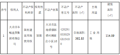 大冶市丰畅商贸集团有限公司(还地桥郭桥食品所)位于大冶市大冶市还地桥镇郭桥村阚家庄小区10号,因办理不动产登记需要进行不动产权籍调查,根据《国土资源部关于做好不动产权籍调查工作的通知》(国土资发【2015】41号)、《地籍调查规程》(GB/T 42547-2023)、《自然资源部关于加快解决不动产登记若干历史遗留问题的通知》(自然资发[2021]1号文)、鄂自然资函【2020】390号文,现将该宗地不动产权籍调查结果予以公示,若相关邻宗地土地权属人对该宗地的公示情况有异议的,请自本公告之日起十五个工作日内将异议书面材料送达我中心。逾期无人提出异议或异议不成立的,我中心将按不动产权籍公告结果予以登记。