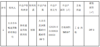 大冶市丰畅商贸集团有限公司(灵乡戴岭食品所)位于大冶市灵乡镇戴岭村戴岭湾38号,因办理不动产登记需要进行不动产权籍调查,根据《国土资源部关于做好不动产权籍调查工作的通知》(国土资发【2015】41号)、《地籍调查规程》(GB/T 42547-2023)、《自然资源部关于加快解决不动产登记若干历史遗留问题的通知》(自然资发[2021]1号文)、鄂自然资函【2020】390号文,现将该宗地不动产权籍调查结果予以公示,若相关邻宗地土地权属人对该宗地的公示情况有异议的,请自本公告之日起十五个工作日内将异议书面材料送达我中心。逾期无人提出异议或异议不成立的,我中心将按不动产权籍公告结果予以登记。