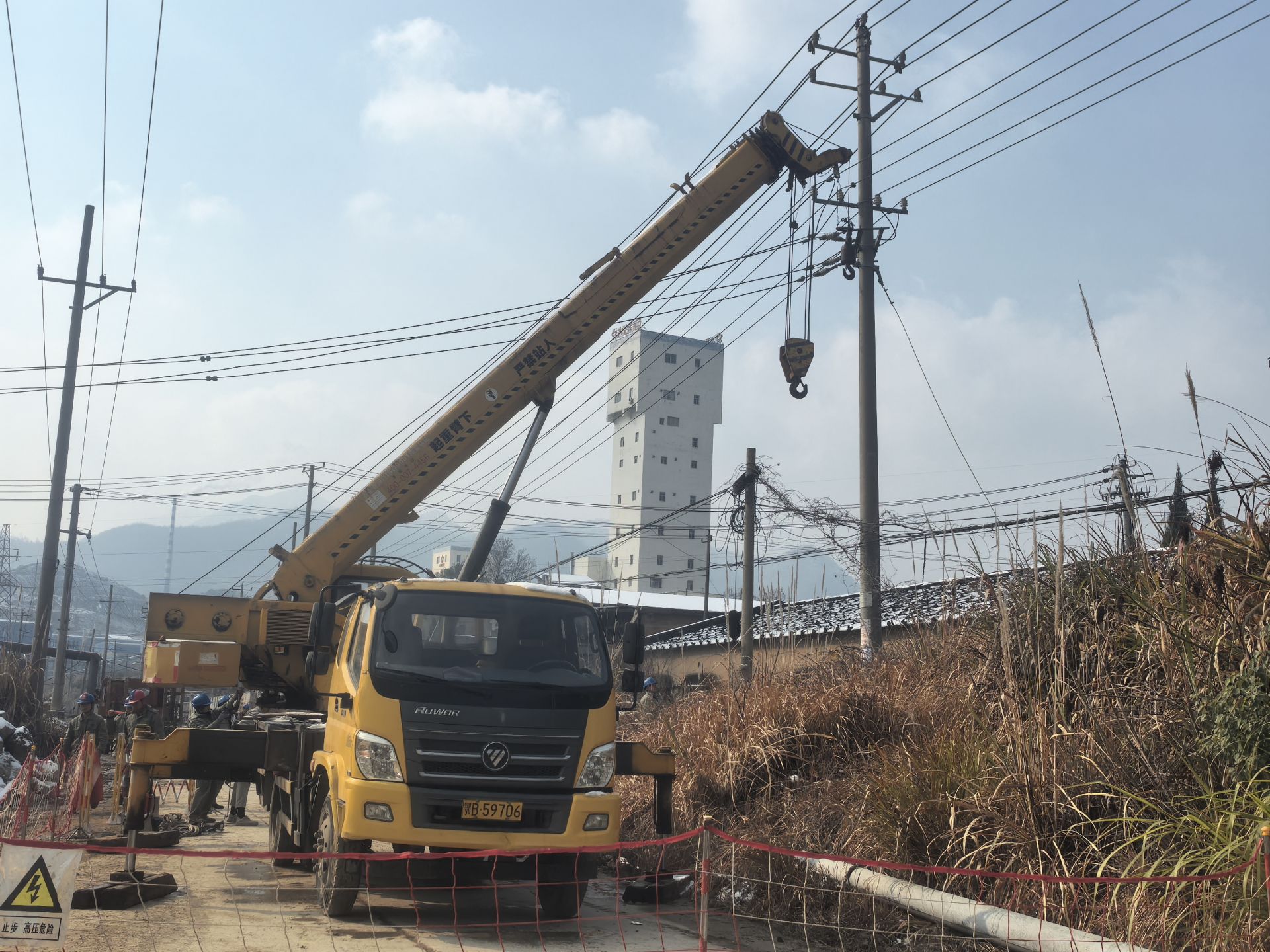 1月22日,陈贵镇铜山口村朱山湾的作业现场一片忙碌,一场高效有序的隐患消缺作业正稳步推进。吊车长臂精准起落,将存在外破隐患的旧电杆安全吊离;高空作业人员系牢安全绳、配齐防护装备,娴熟拆卸导线、绝缘子等配件;地面人员默契配合,同步转运新电杆。各班组分工明确、高效联动,严格遵循标准化作业流程,最大限度降低施工对周边用户用电的影响,切实筑牢冬季供电安全屏障。