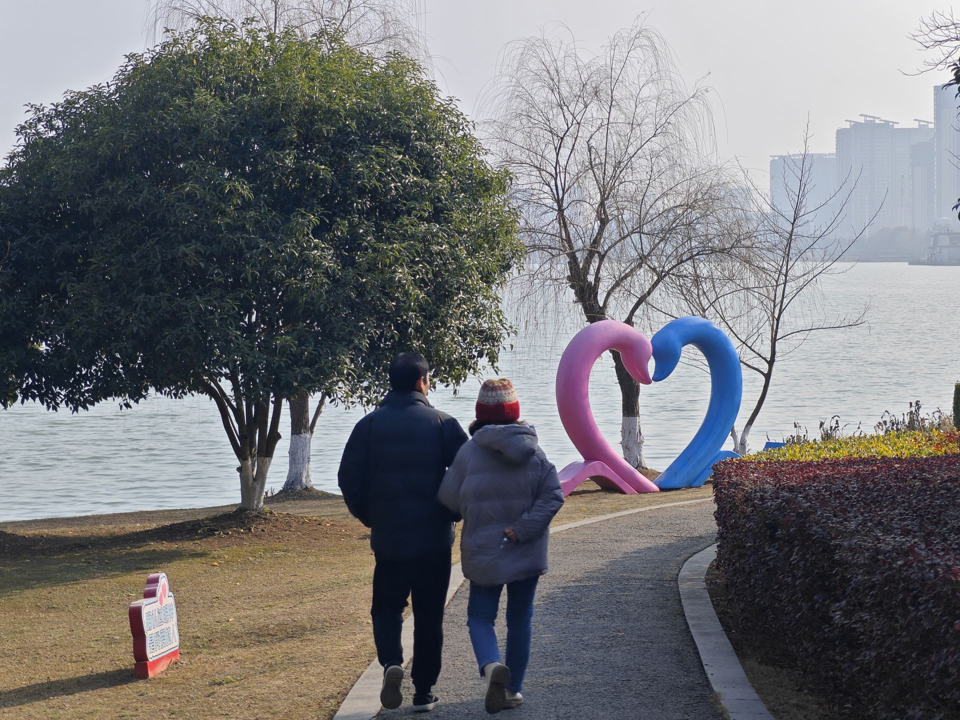 1月23日,记者走进位于尹家湖公园内的婚姻文化主题公园,映入眼帘的是错落有致的绿植、浪漫雅致的林间小路,红色的爱情宣言牌与古色古香的月老台相映成趣,处处洋溢着温馨甜蜜的氛围。