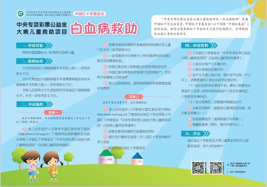 针对18周岁以下患有白血病的贫困家庭儿童最高补助3万元,完成造血干细胞移植的患儿最高补助5万元。