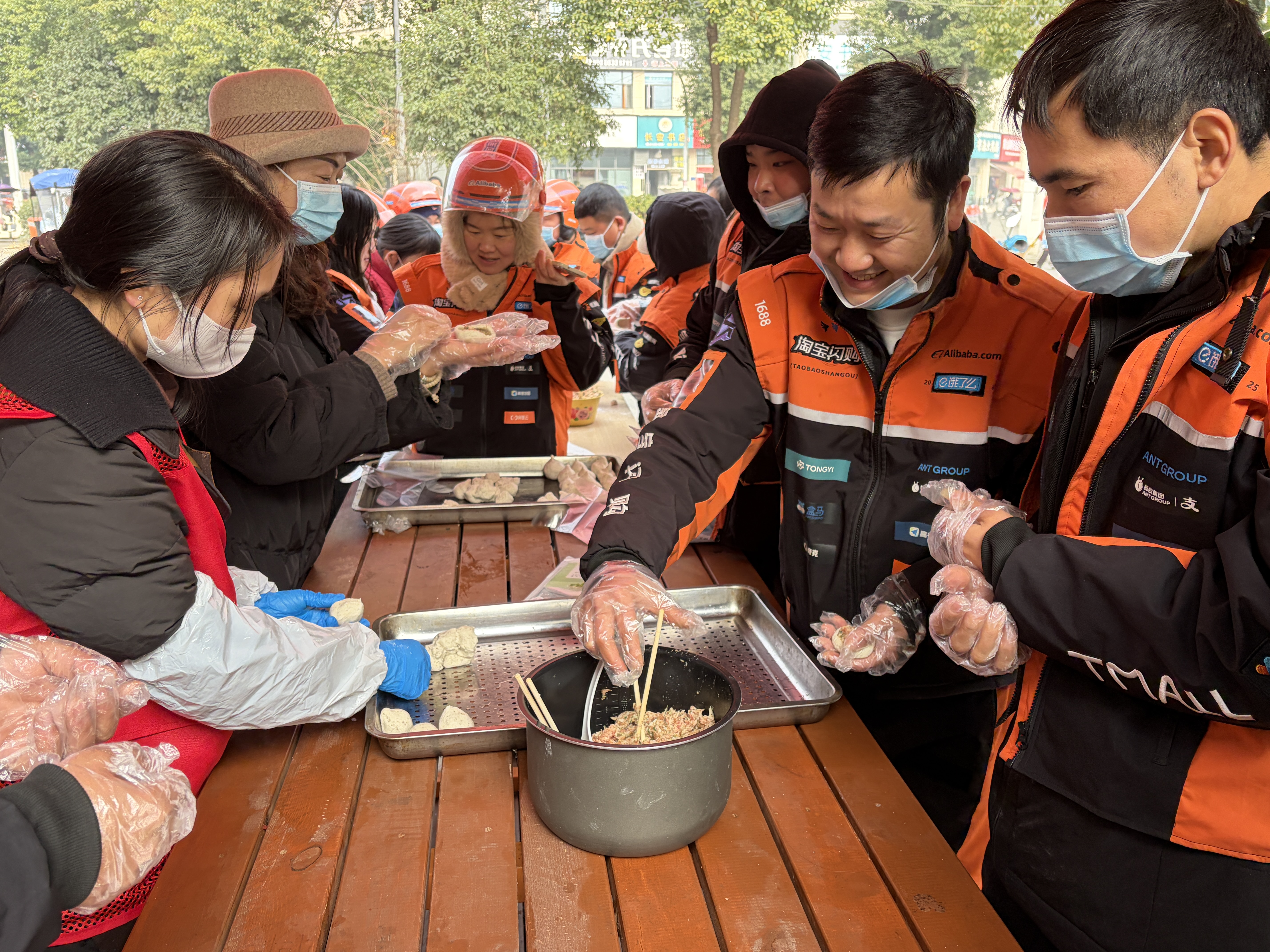 活动中,平日里穿梭于街巷的骑手们在“骑心向党”志愿服务队领队的细致讲解和示范下,动手学做本地特色芋头圆子。从揉搓芋粉到包裹馅料,大家认真投入、互相交流,手指在面团间灵活翻动。笑声阵阵中,一盘盘圆润饱满的芋头圆子逐渐成型,彼此的距离也在协作中悄然拉近。