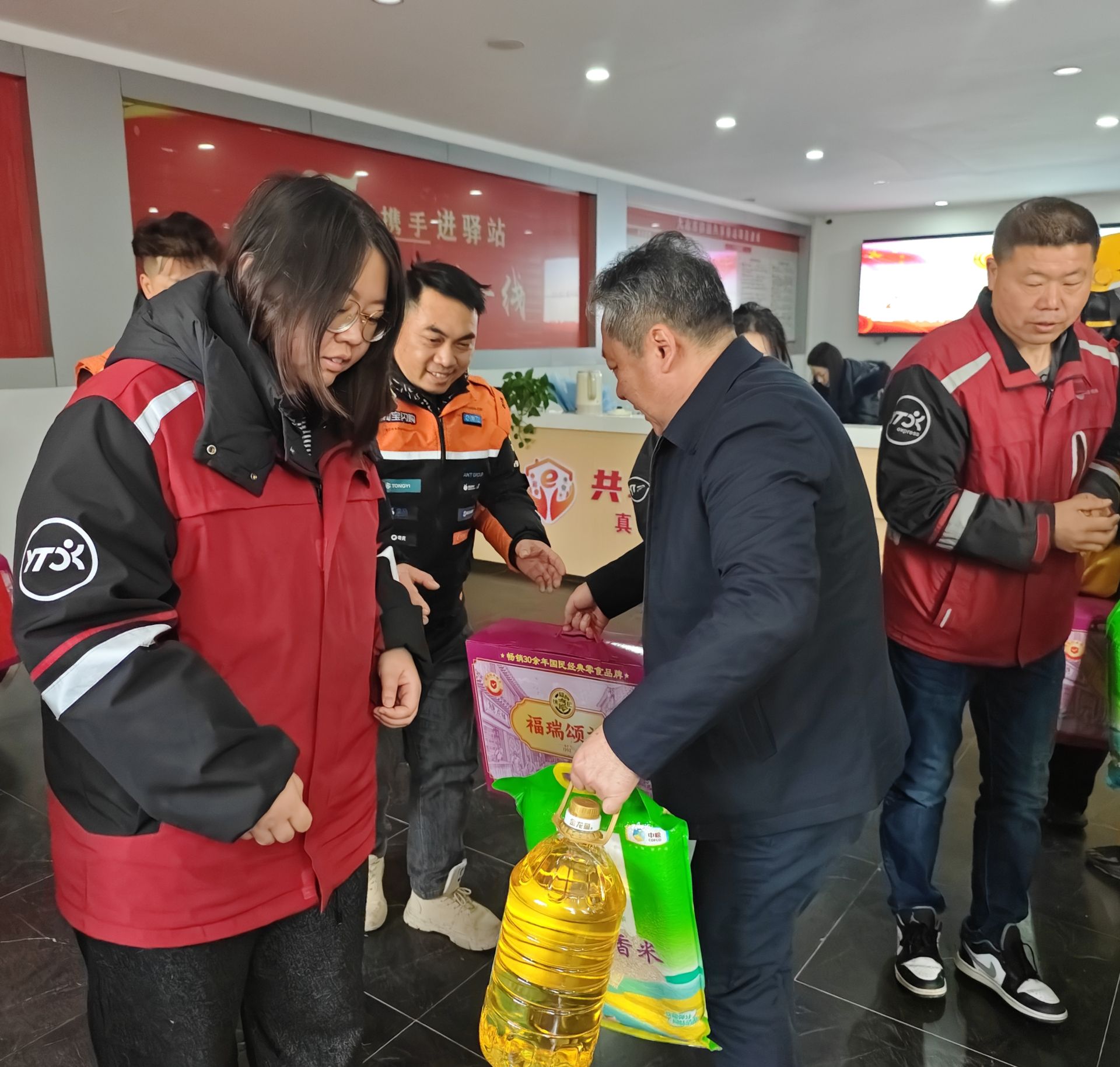 离开劲牌公司后,慰问组前往集中慰问点,为环卫工人与新就业形态劳动者等一线从业者发放保暖物资和节日慰问品,感谢他们常年坚守岗位,用辛劳守护城市运转、服务群众生活。