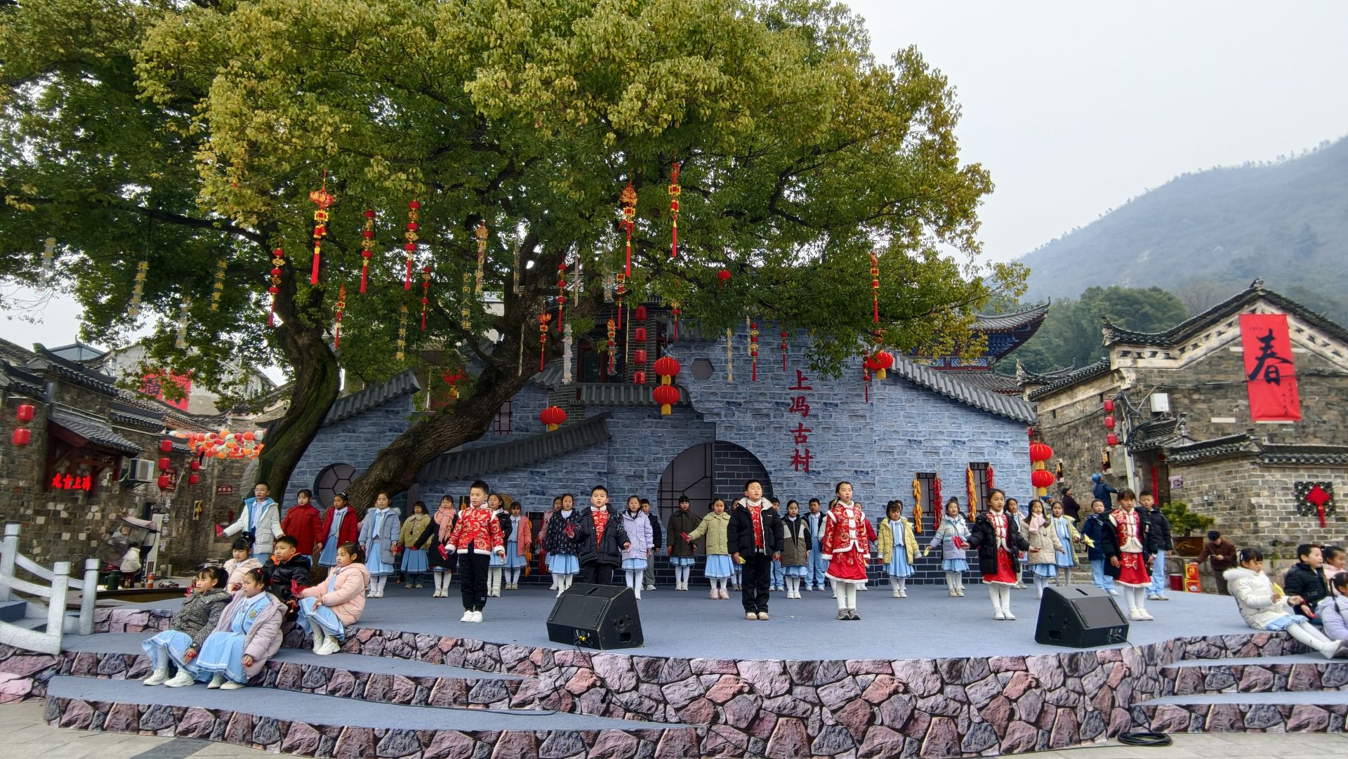 云上大冶报道(记者 郑甜甜)小年将至,年味渐浓。2月10日,走进上冯古村生态旅游区,红灯笼一串串挂在枝头、屋檐、巷口,将古村装点得温暖又喜庆。2026年全国“四季村晚”春节主场活动即将在此举行,村民们忙着排演节目、布置村庄、整理特色业态,整个村庄沉浸在欢欢喜喜迎新年、热热闹闹办“村晚”的浓厚氛围里。