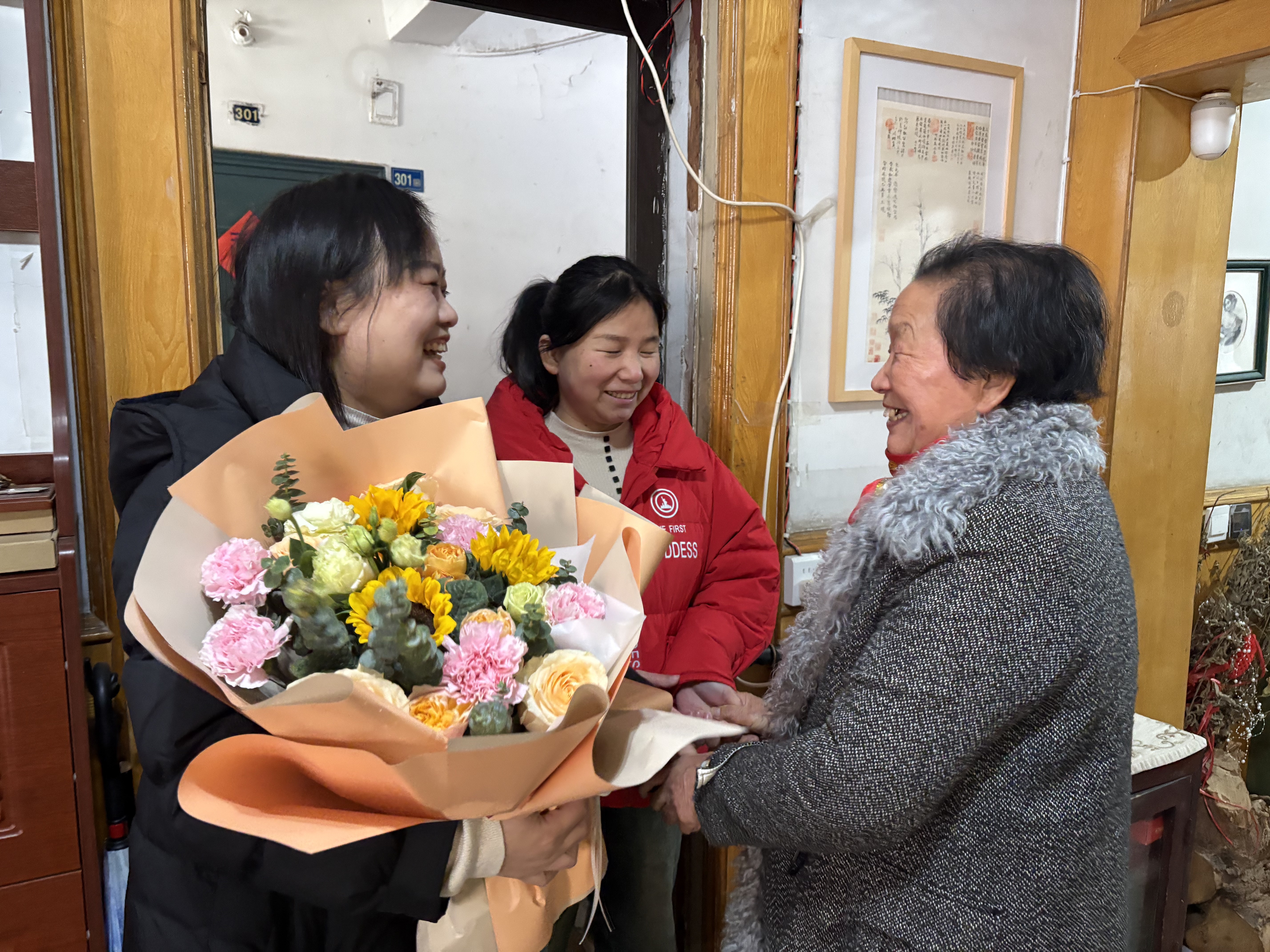 社区党委书记陈丽介绍:“我们在日常走访中发现,这两位老人都面临子女不在身边、年事已高、行动不便的难处,过年过节更容易感到孤单。所以我们特意选在小年这天,用实实在在的陪伴,让他们感受到社区这个大家庭的温暖,让老人知道,他们不是一个人。”