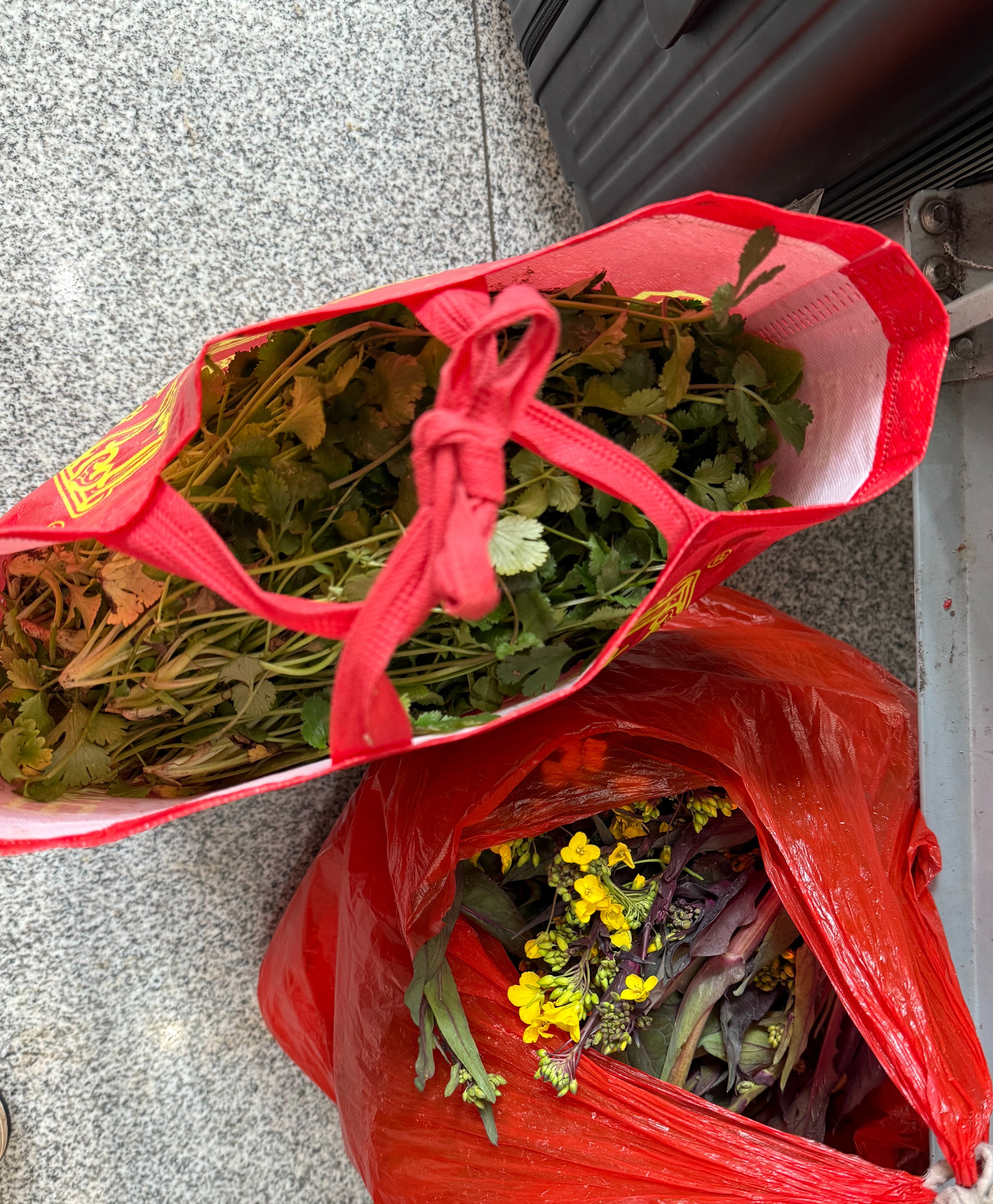 候车大厅座椅上,家住茗山乡的金泽把两提青菜护在脚边。“这次我是去江西赣州的姐姐家过年,我爸妈已经提前去了。”金泽说,“姐姐嫁到江西了,就爱吃点家里种的菜。袋子里是红菜薹、香菜、大白菜等,都是今天早上在自家菜地里现摘的。”金泽笑着说。