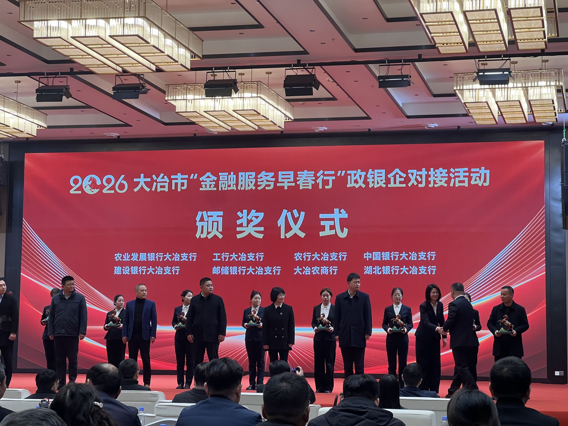 云上大冶报道(记者 但超) 2月12日,大冶市2026年“金融服务早春行”政银企对接活动举行,邮储银行大冶市支行被授予“突出贡献金融机构”称号,并与湖北光谷东控股集团签署金融合作协议,以实际行动助力地方经济高质量发展。