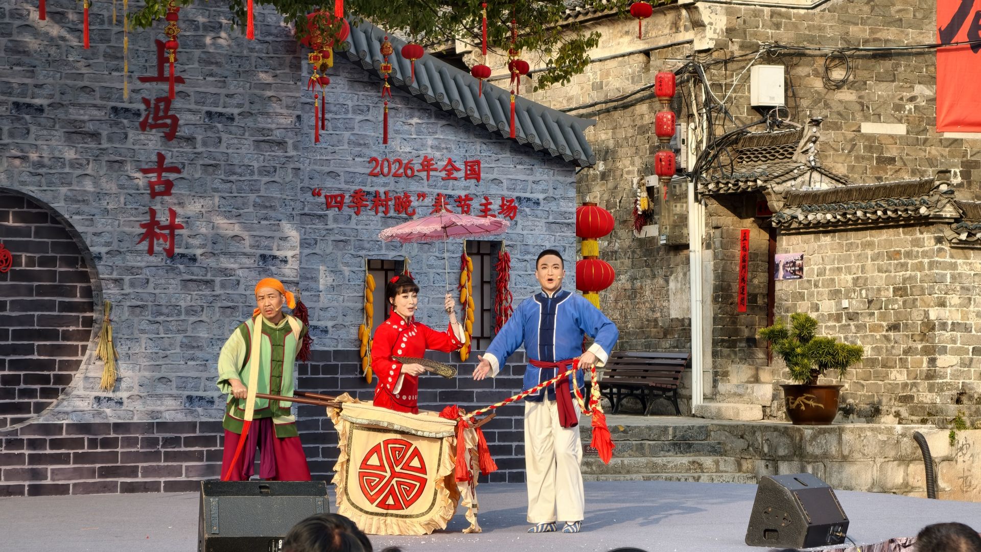 报道开篇,镜头便定格在大冶上冯古村的新春画卷中。彼时春节年味尚未散去,这座享有“九古奇村,诗画上冯”美誉的古村落依旧热闹红火,红灯笼挂满青瓦古宅与青石板街巷,与古民居、古树、古驿道相映成趣,构成一幅喜庆祥和的年俗图景。