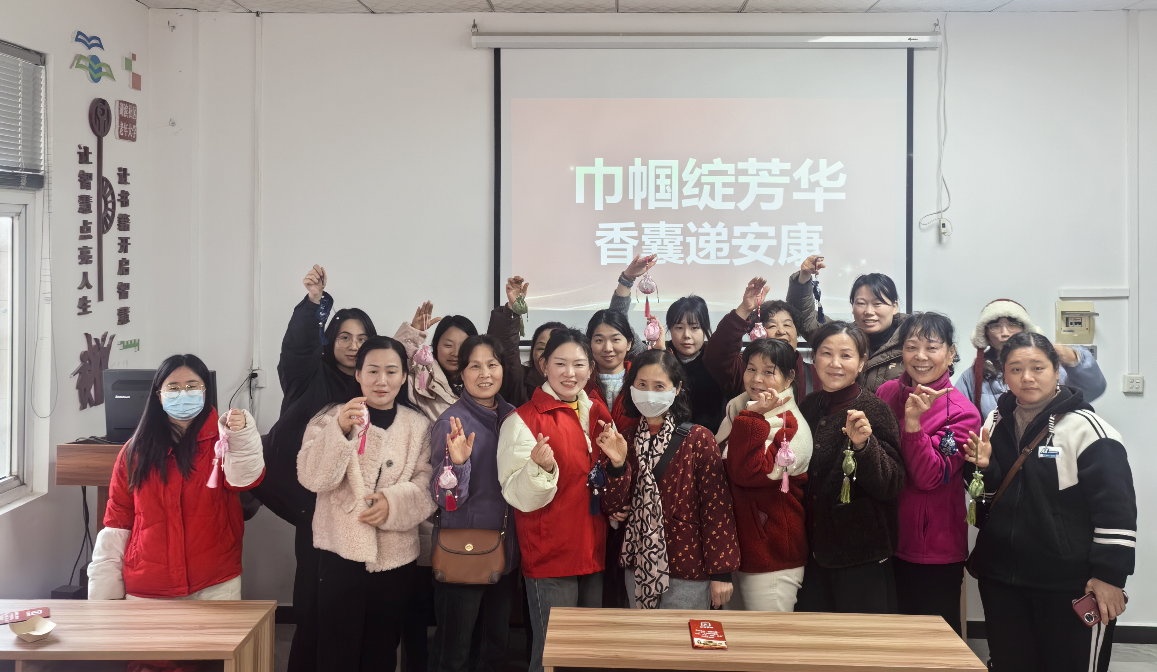 手工传情寄安康,传统文化共传承。湖滨社区开展香囊制作活动,志愿者准备艾草、薄荷、薰衣草等天然养生香料及绣布、针线、流苏等材料,在老师指导下,大家穿针引线、细心缝制,一个个精致小巧、香气怡人的香囊顺利完成,既传递着健康平安的美好祝福,也让传统民俗文化在指尖焕发光彩。