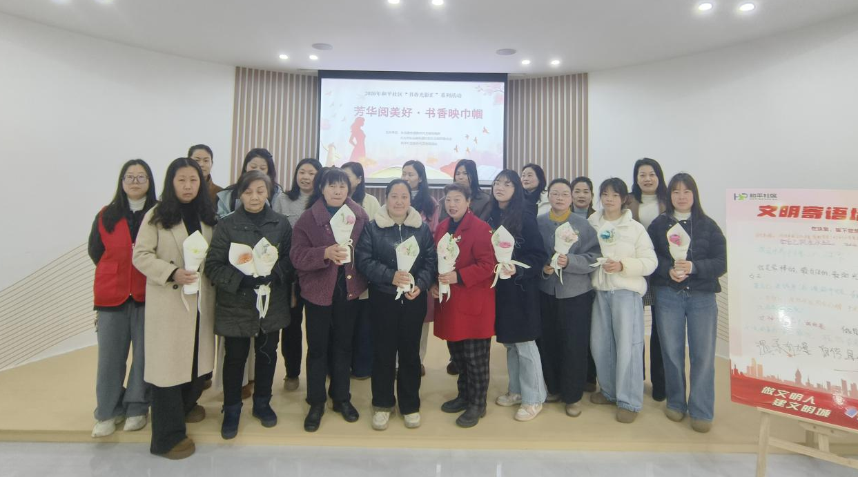 活动还设置了温馨的互动环节。在巾帼书香寄语墙前,大家纷纷写下祝福与敬意,抒发对女性力量的赞美;社区为每位参与者送上鲜花,以暖心赠礼传递节日关怀。活动最后,全体人员合影留念,定格最美巾帼芳华与书香光影之美。