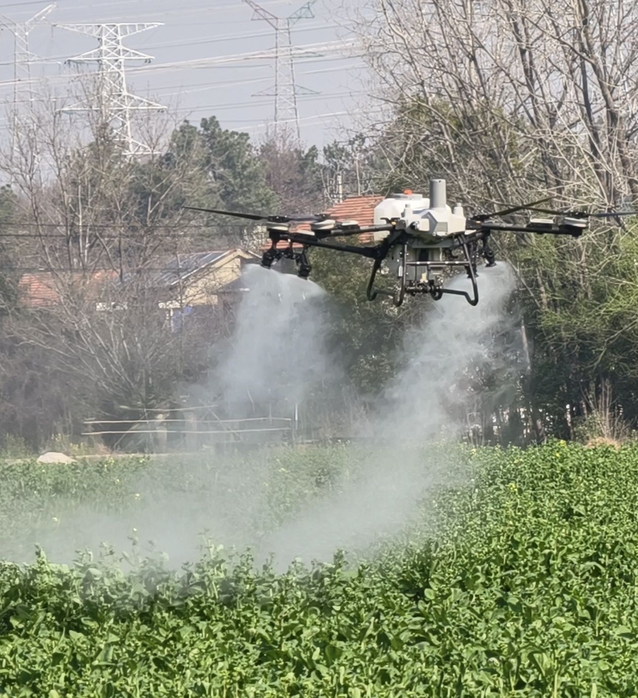 在保安镇西山村西山大畈500余亩的油菜田里,连片的油菜长势喜人。3架农用无人机在飞手的操控下腾空而起,沿着设定的航线匀速飞行,细密的药雾均匀洒向油菜植株。高效便捷的现代化作业模式,让在场农户赞不绝口。