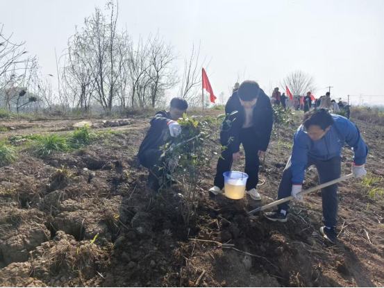 经过一上午的辛勤劳作,一株株树苗错落有致、迎风挺立。此次活动共栽植李树、桃树等320株,进一步提升了管理区辖区绿化覆盖率,改善了生态环境面貌。